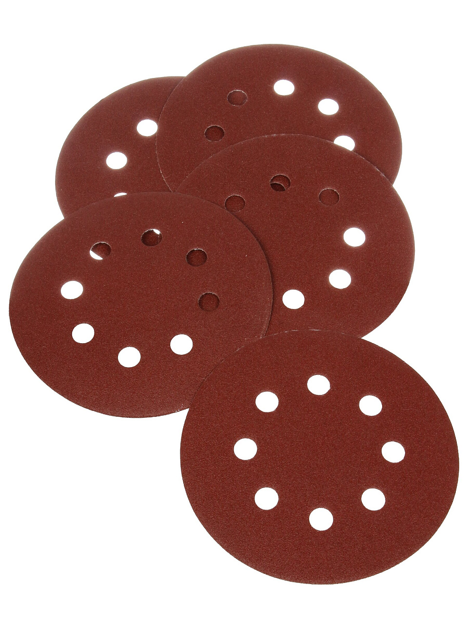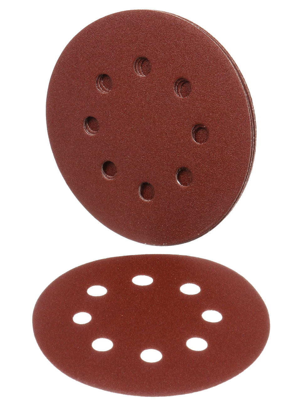 В упаковке 5 абразивных кругов. Крепление — на липучке («Velcro»). Перфорация — 8 отверстий для эффективного пылеотвода.