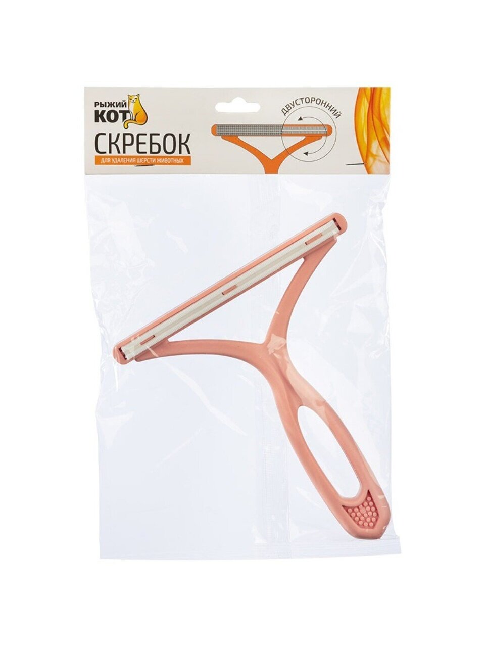 Скребок для удаления шерсти животных Рыжий кот — эффективное решение для быстрой и легкой уборки шерсти домашних питомцев. Двусторонний скребок размером 12х14 см помогает поддерживать чистоту в доме без лишних усилий. Универсальный аксессуар для ухода за мебелью и текстилем.