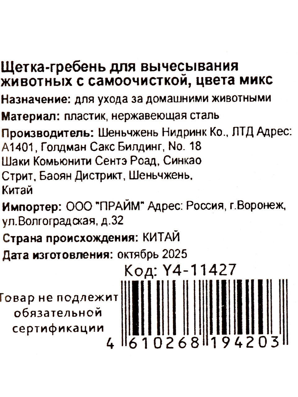 В отличие от обычных щёток, эта модель не требует ручной очистки после каждого применения, что экономит ваше время и снижает риск аллергии. Часто интересуются, подходит ли щетка для длинношерстных и короткошерстных пород — да, благодаря оптимальной длине зубцов инструмент эффективен для любых типов шерсти. Если вы ищете, какую щетку купить недорого для дачи или дома — Y4-11427 станет отличным выбором: её легко брать с собой, а прочный корпус выдерживает частые поездки.