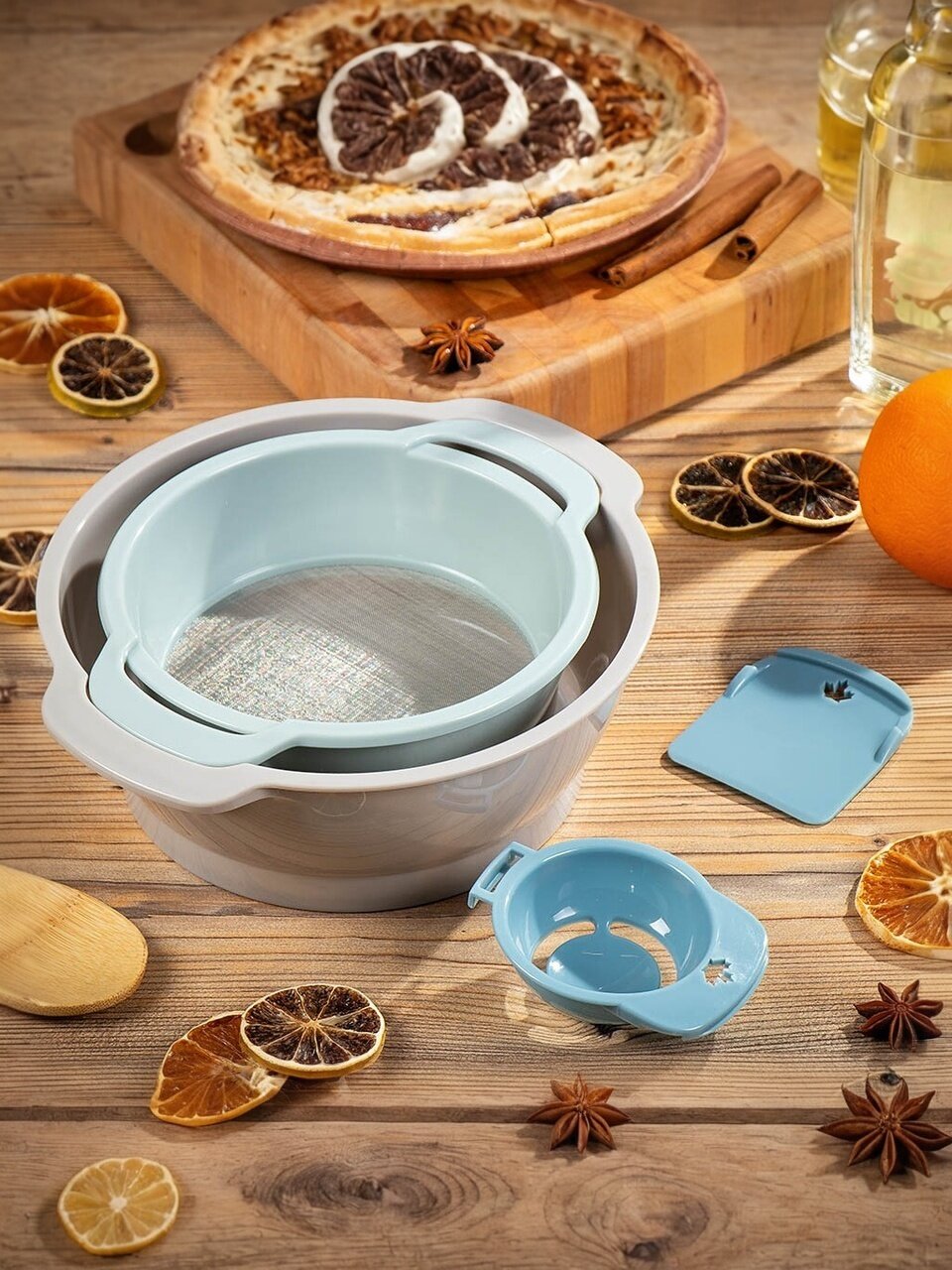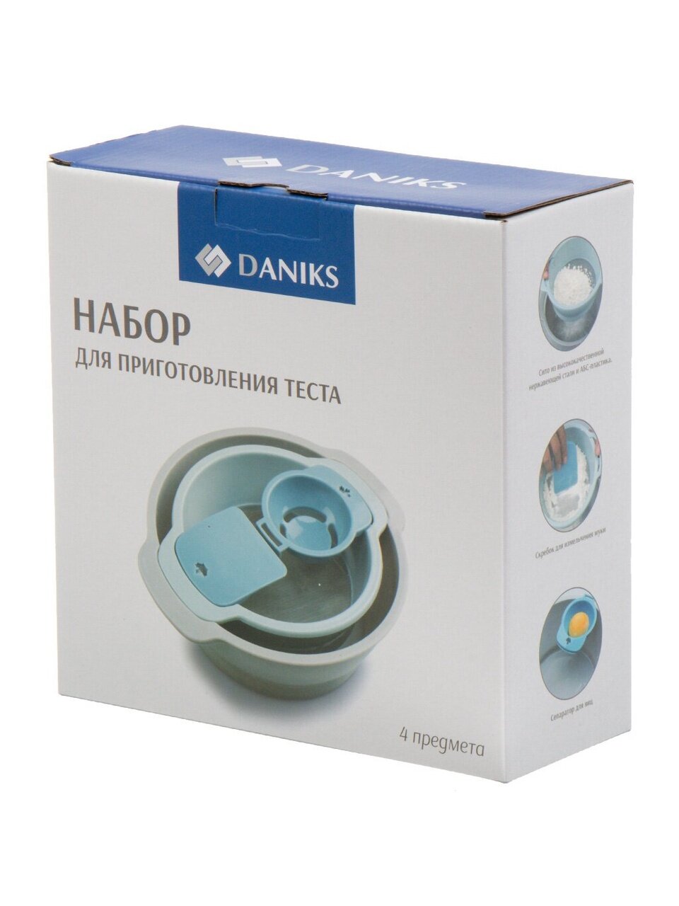 Набор для приготовления теста, 4 предмета, миска, сито, сепаратор, лопатка, пластик, Daniks, Y4-7876