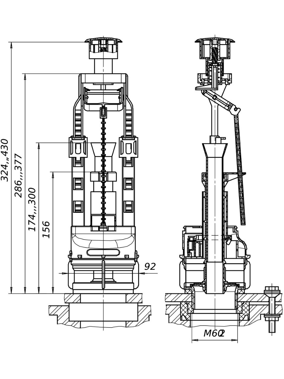 - Оригинальная система удержания клапана в открытом положении обеспечивает максимальный расход воды во время слива.