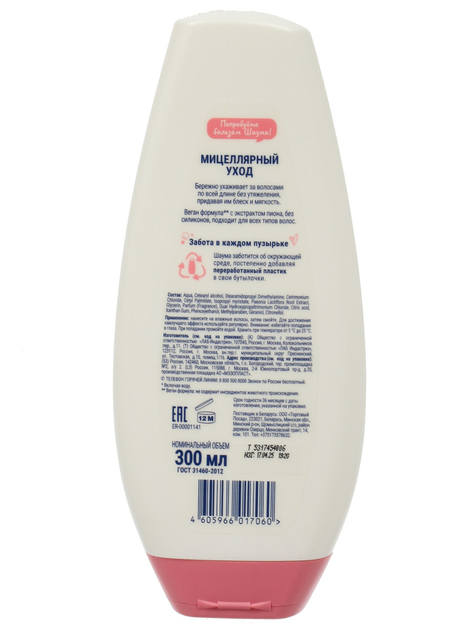 Бальзам Schauma Мицеллярный уход для всех типов волос, 300 мл — быстрое восстановление, легкость расчесывания и защита без утяжеления. Уход, который работает!