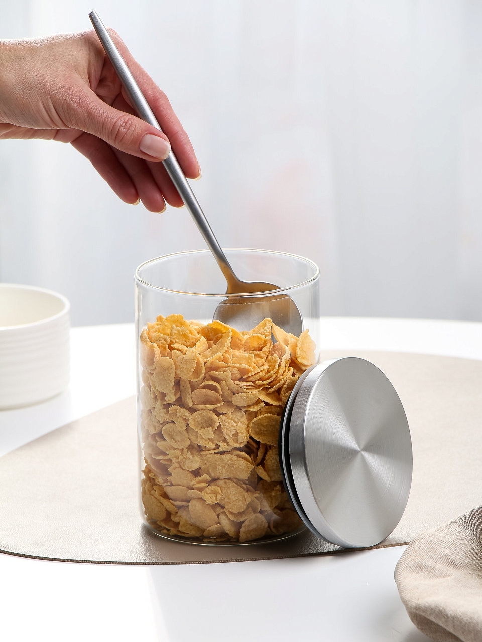 - Банка с крышкой защитит содержимое от пыли и обеспечит быстрый доступ к часто используемым продуктам;