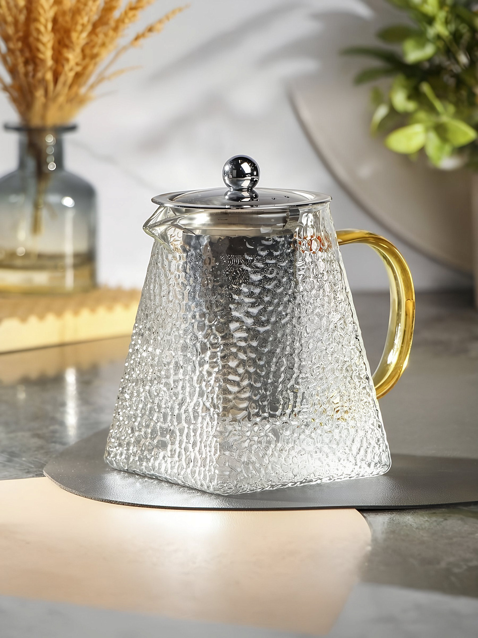 Прозрачный цвет корпуса подчеркивает легкость и изящество чайника, а металлические элементы добавляют нотку современности. Изготовленный с учетом всех стандартов качества, этот чайник станет надежным спутником в мире ароматного чая.