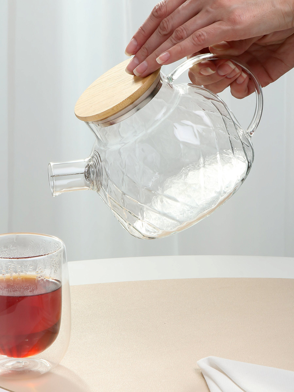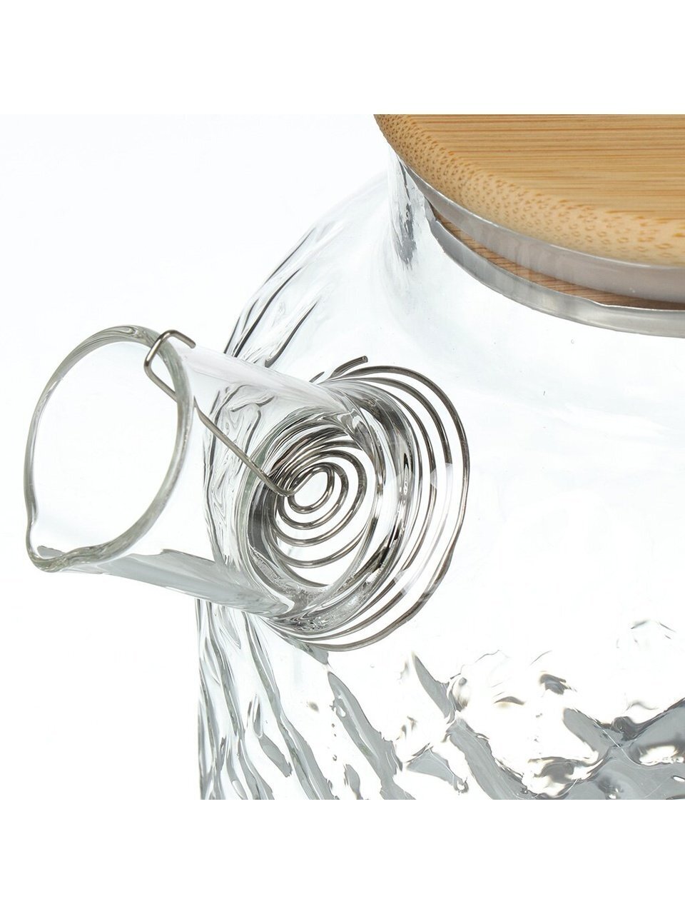 Стеклянный корпус чайника позволяет наслаждаться красотой заваривания чая, наблюдая, как раскрываются чайные листья, создавая уникальный ритуал. Прозрачный цвет и рельефный дизайн делают его не только функциональным, но и эстетически привлекательным элементом вашего интерьера.