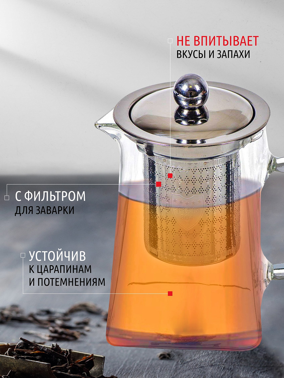 В отличие от пластиковых и керамических аналогов, стеклянный корпус не впитывает запахи и легко моется. Металлическая крышка обеспечивает герметичность и долговечность. Если вы ищете, чем отличается стеклянный чайник от металлического, обратите внимание: стекло сохраняет вкус чая без посторонних привкусов, а квадратная форма добавляет современный акцент интерьеру. Подходит ли для заваривания травяных сборов? Да, благодаря фильтру можно использовать любые ингредиенты.