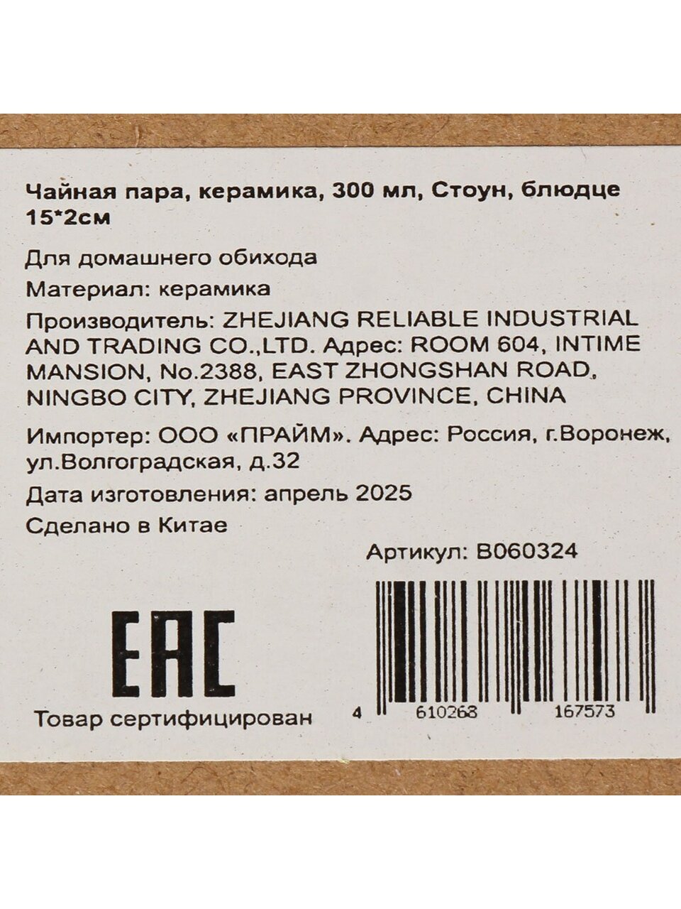 Вы можете приобрести «Чайная пара керамика, 2 предмета, на 1 персону, 300 мл, Стоун, блюдце 15х2 см, B060324» и другие товары в нашем интернет-магазине в Краснодаре по низким ценам и с бесплатным самовывозом.