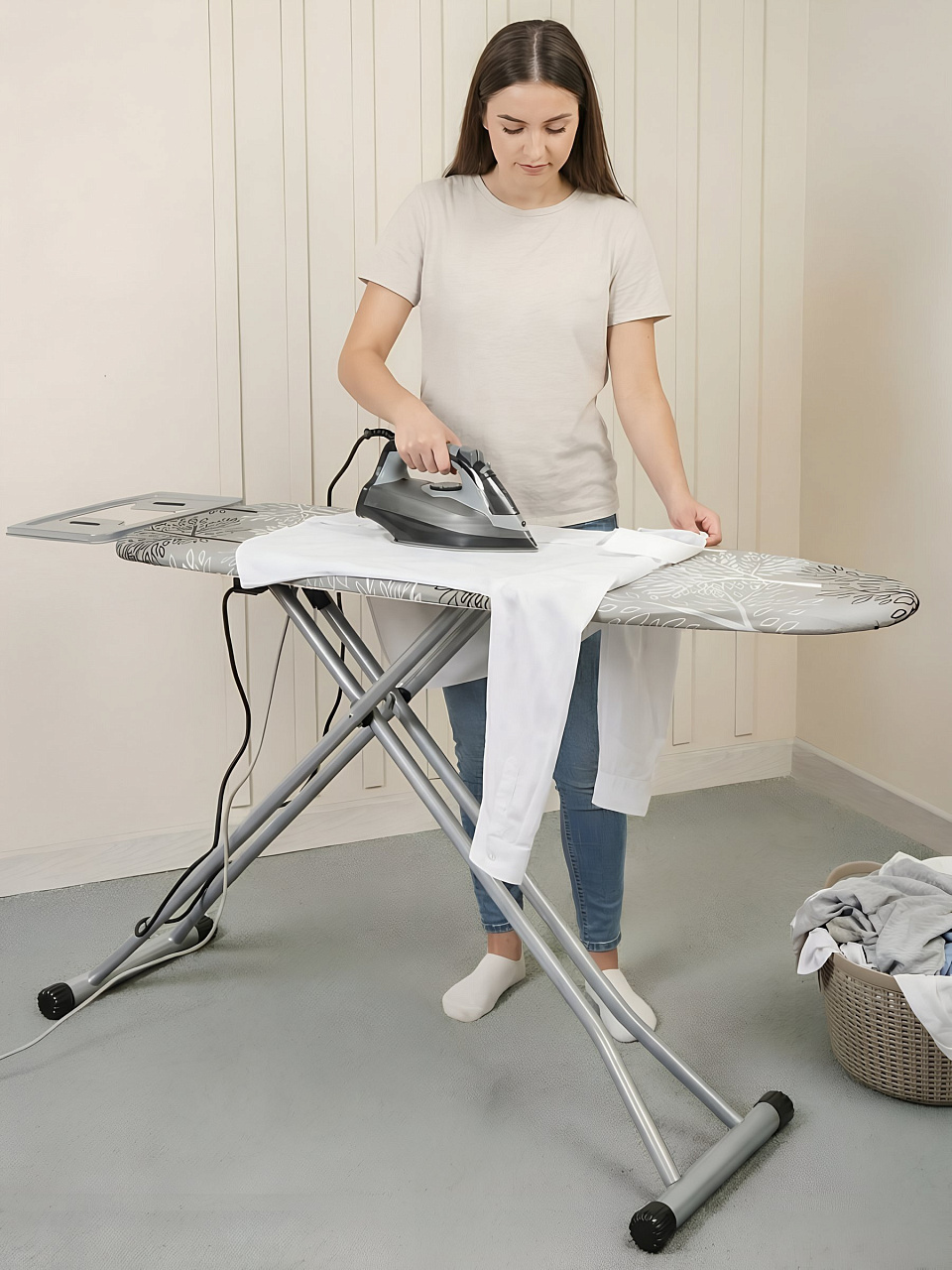 Практичность: встроенная розетка для утюга избавляет от необходимости использования удлинителей и делает процесс глажения более удобным;