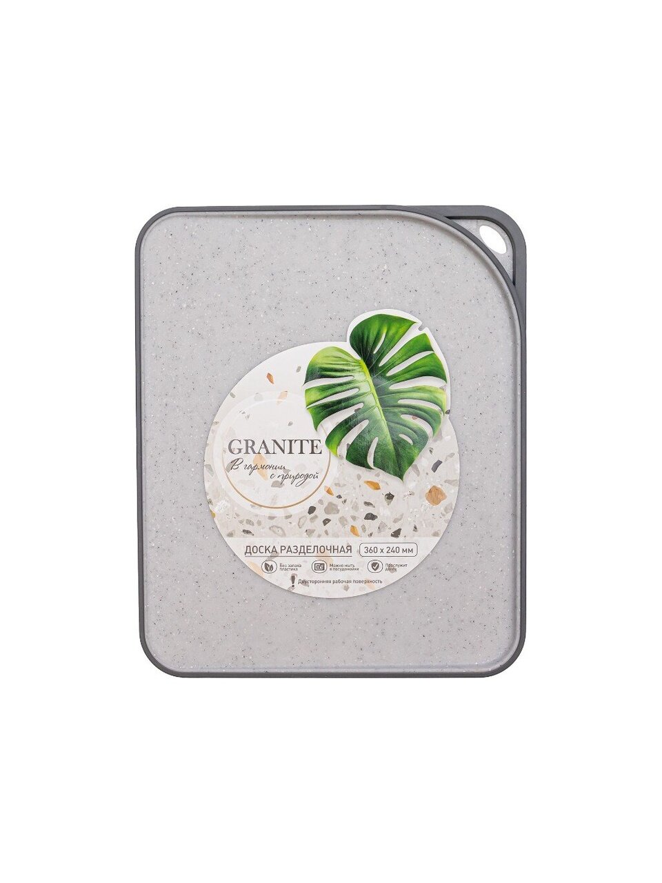Разделочная доска из пластика Полимербыт Granite 36х24 см — идеальный выбор для кухни. Современный дизайн, универсальный белый цвет и удобная ручка делают её незаменимой для ежедневного использования. Подходит для нарезки мяса, рыбы, овощей, фруктов и хлеба. Можно мыть в посудомоечной машине, подвесная конструкция экономит место.