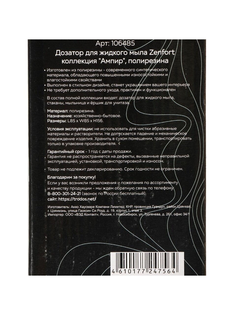 Дозатор для жидкого мыла Zenfort Ампир 600 мл: стильный акцент в ванной, экономия расхода и идеальный выбор для дома или подарка.