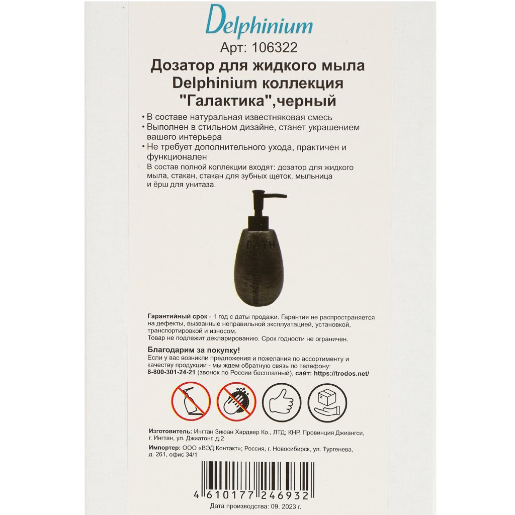 Дозатор для жидкого мыла Delphinium Галактика 8.5х8.5х18.5 см — стиль и практичность для современной ванной. Черный цвет, оптимальный объем, выгодная цена.