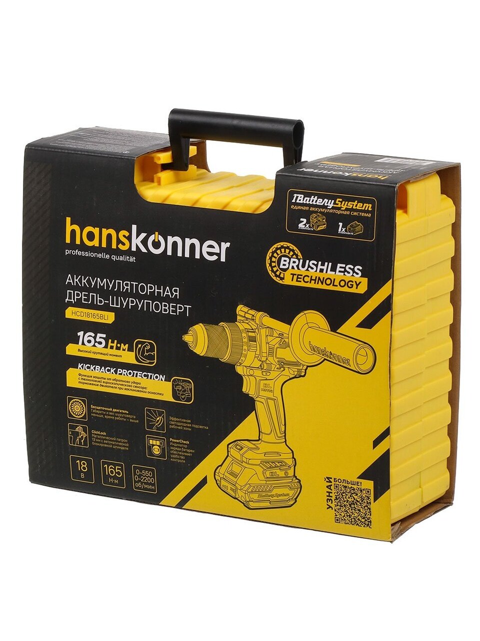 Дрель-шуруповёрт Hanskonner — это эффективный и универсальный инструмент, который позволит повысить качество Вашей работы. Аккумуляторная модель HCD18165BLI даёт Вам свободу передвижения и возможность работать в любых условиях, даже без доступа к электричеству. Блокировка шпинделя и большой быстрозажимной патрон обеспечивают лёгкую замену оснастки одной рукой и надёжную фиксацию.