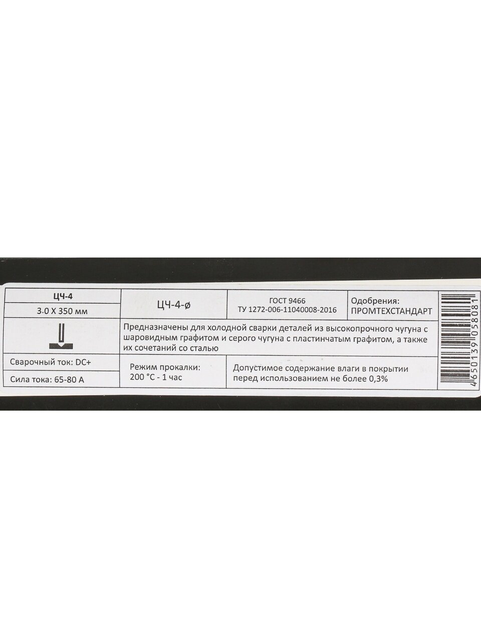 Электроды имеют диаметр 3 мм и длину 350 мм, что оптимально для сварки изделий из чугуна различной толщины.