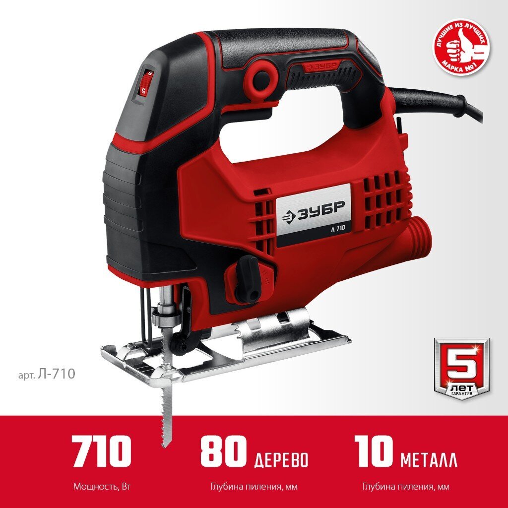 Вы можете приобрести «Лобзик электрический Зубр, Л-710, 710 Вт, дерево 80 мм, сталь 10 мм, маятниковый ход, регулировка оборотов» и другие товары в нашем интернет-магазине в Обнинске по низким ценам и с бесплатным самовывозом.