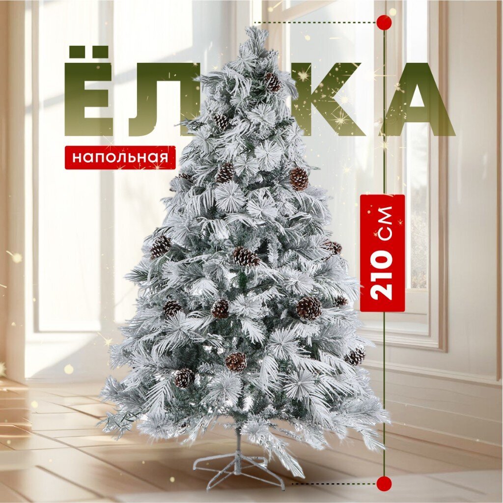 Елка новогодняя напольная 210 см — заснеженная хвоя, декор ветви, подставка в комплекте: создайте атмосферу зимней сказки у себя дома!