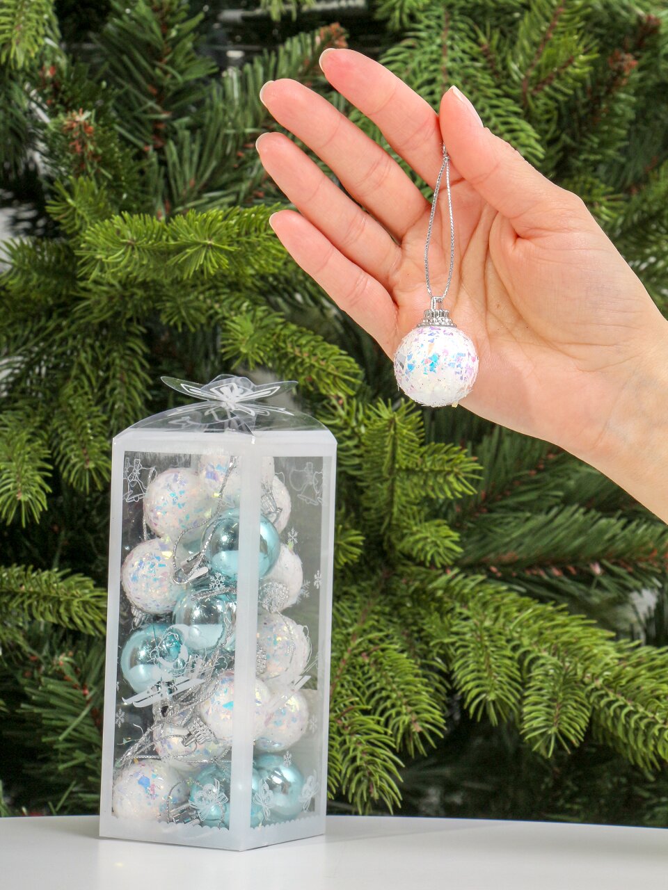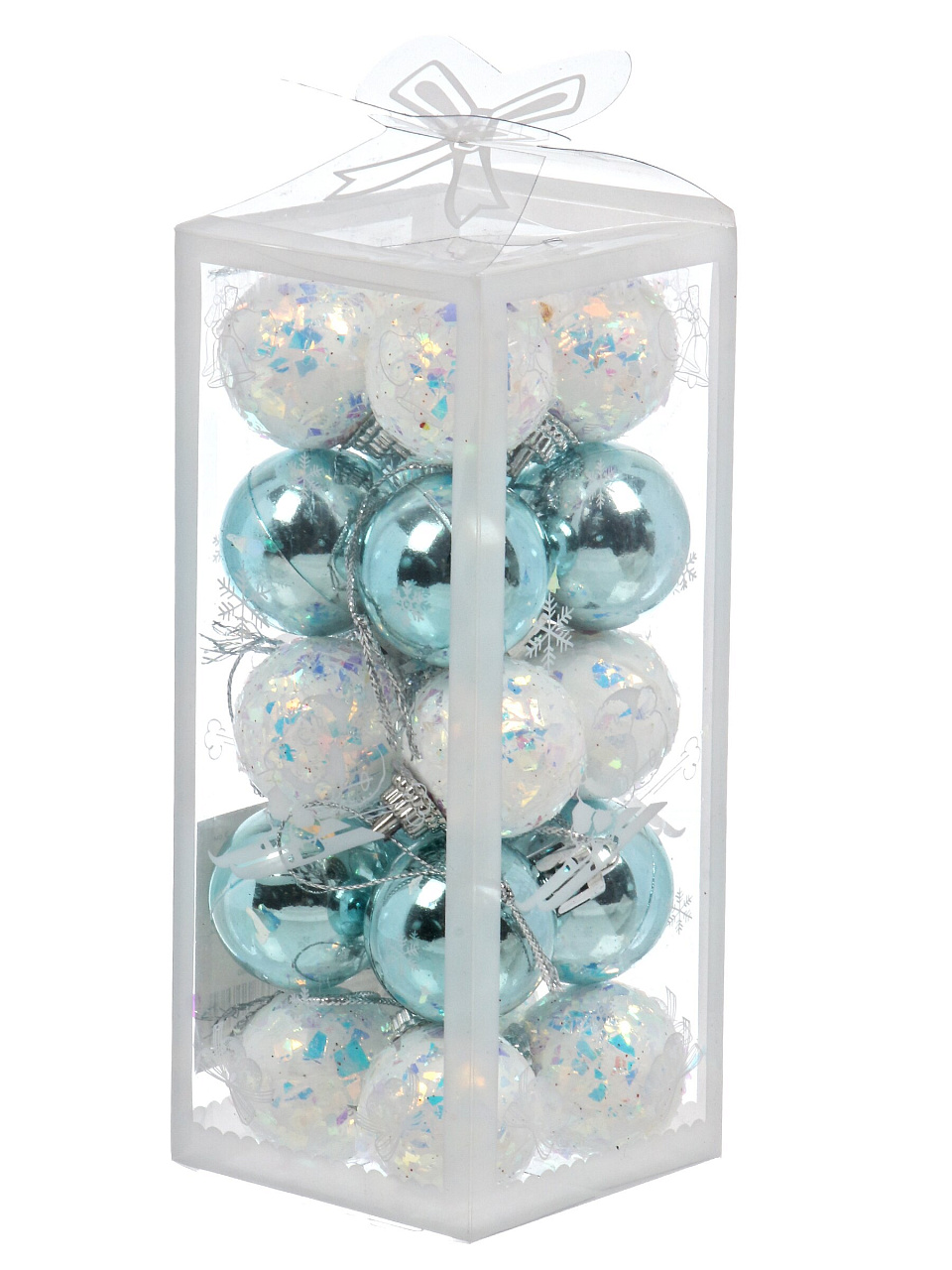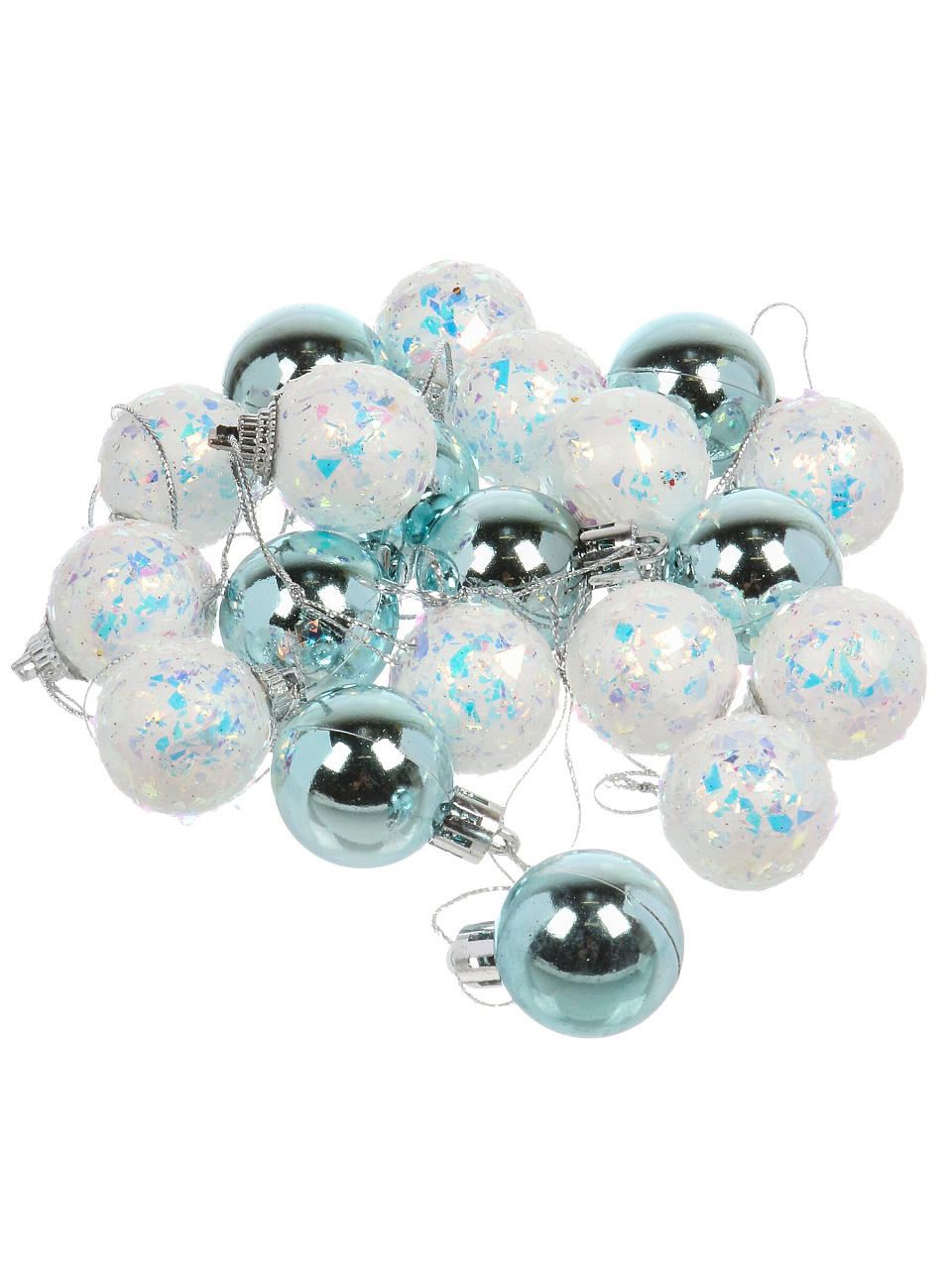Набор шаров 20 шт, белый, голубой, 3 см: стильное украшение для ёлки и интерьера, небьющиеся, в коробке — выгодно купить для дома или подарка.