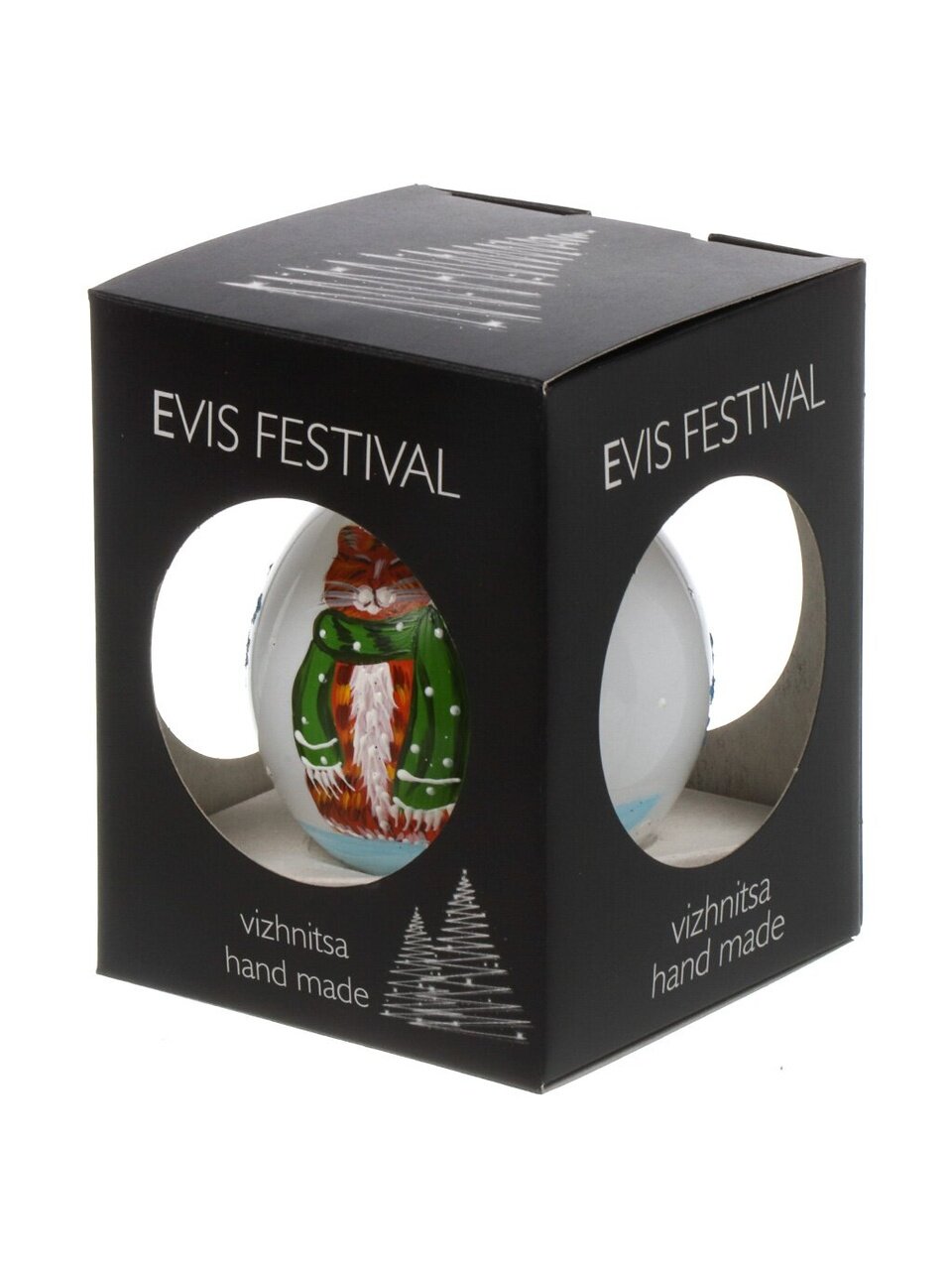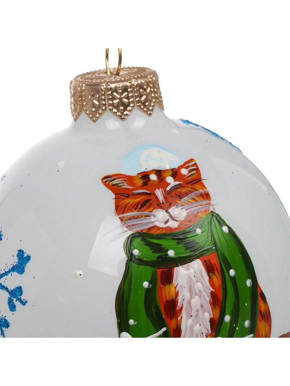Елочное украшение Evis — стеклянный шар 8 см с ручной росписью «Кот»: стильный новогодний подарок, который добавит уюта и индивидуальности вашему интерьеру.