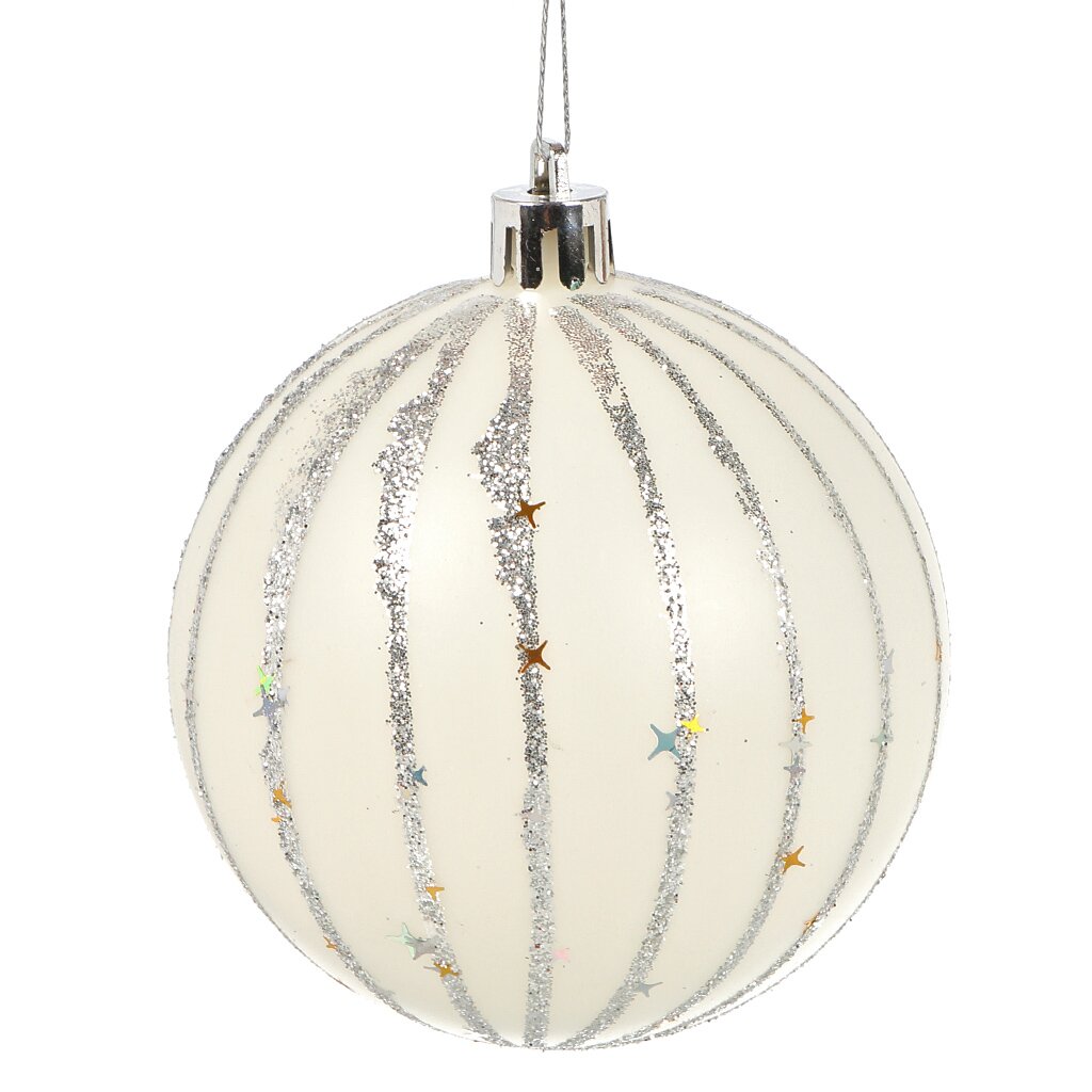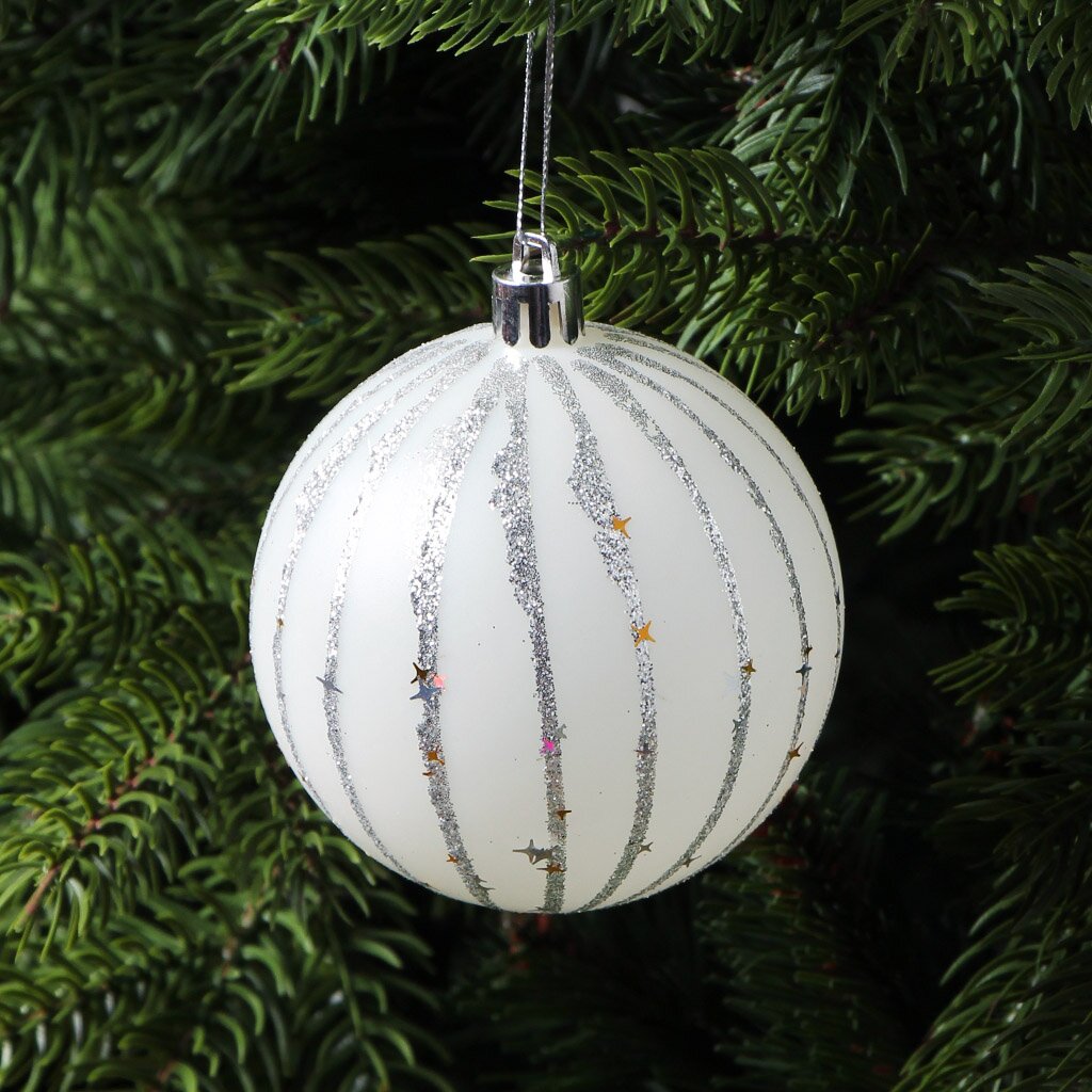Набор шаров белого цвета с серебром (артикул Y4-9473) — это современное решение для тех, кто ищет, какие ёлочные игрушки выбрать для стильного и безопасного декора. Полимерный материал делает шары лёгкими и небьющимися, что особенно важно для семей с детьми и животными. Покрытие с блестками придаёт праздничный блеск, а универсальный диаметр 8 см подходит для любой ёлки — как в квартире, так и на улице.