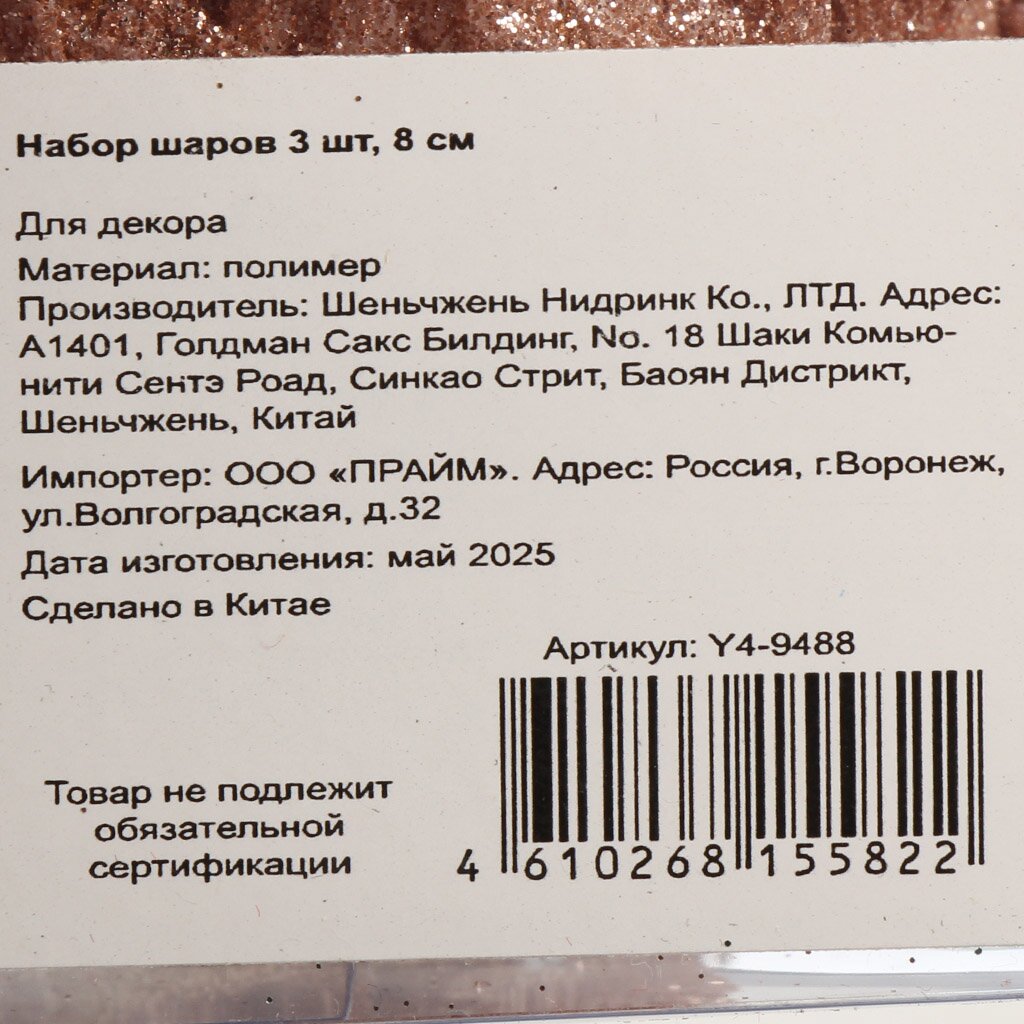 Закажите набор шаров 3 шт, 8 см, розовое золото, глиттер прямо сейчас и получите стильный, долговечный декор с гарантией качества. Быстрая доставка, выгодная цена и возможность купить недорого набор шаров для дачи, улицы или дома — ваш праздник будет особенным!