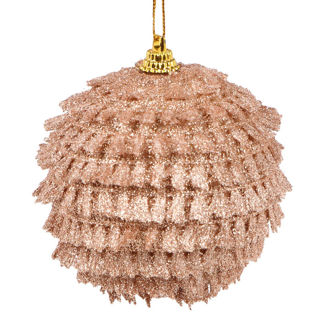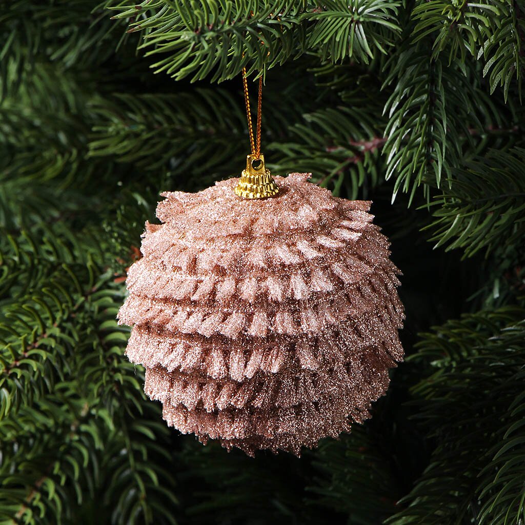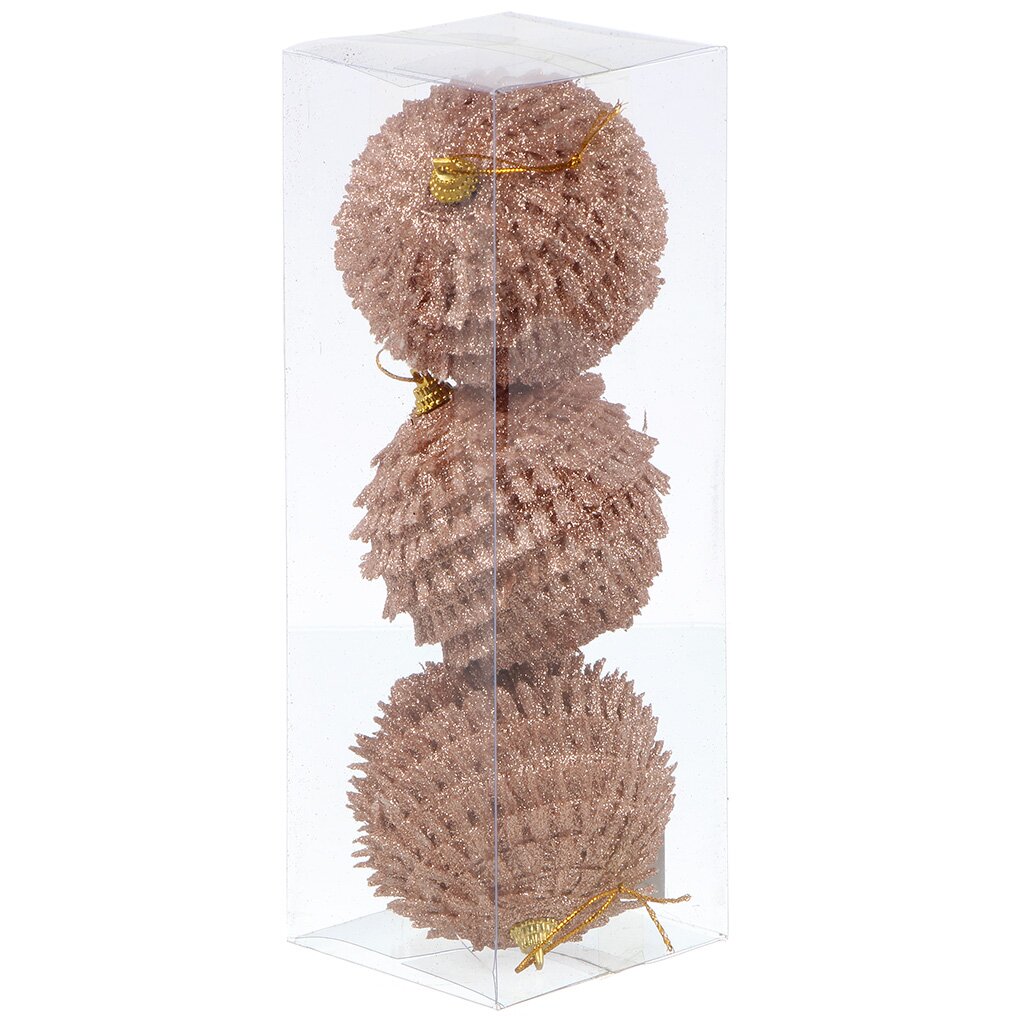 Набор шаров 3 шт, 8 см, розовое золото, глиттер: стильный декор для уличной елки, прочный материал, идеален для подарка и украшения дома