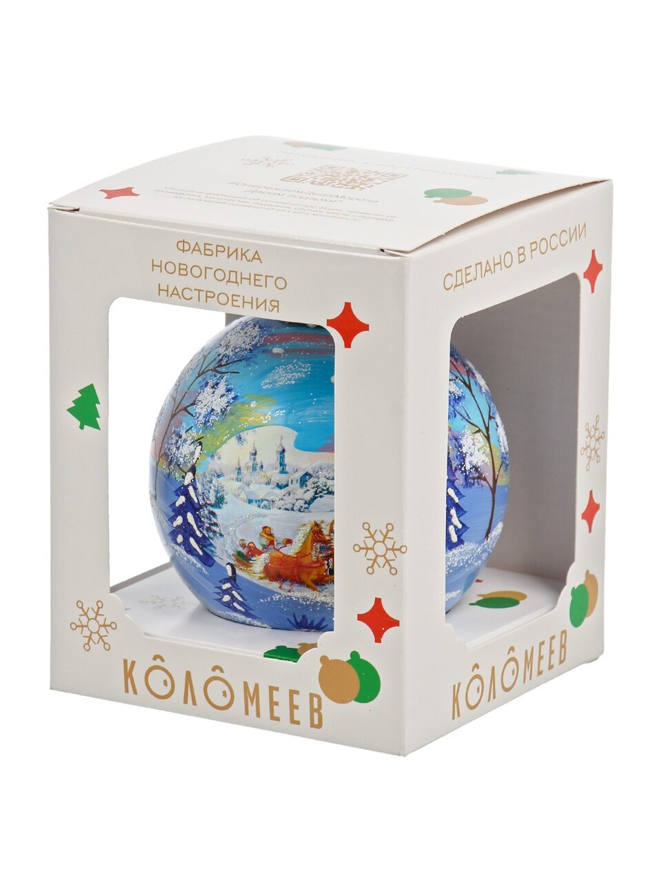Диаметр шара — 10 см, материал — прочное стекло с ручной росписью и блестящим покрытием. Идёт в индивидуальной коробке, артикул КУ-100-254043.