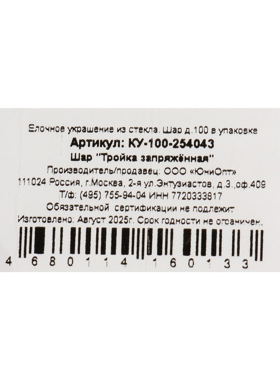 Вы можете приобрести «Елочный шар Тройка запряжённая, 10 см, стекло, КУ-100-254043» и другие товары в нашем интернет-магазине в Липецке по низким ценам и с бесплатным самовывозом.