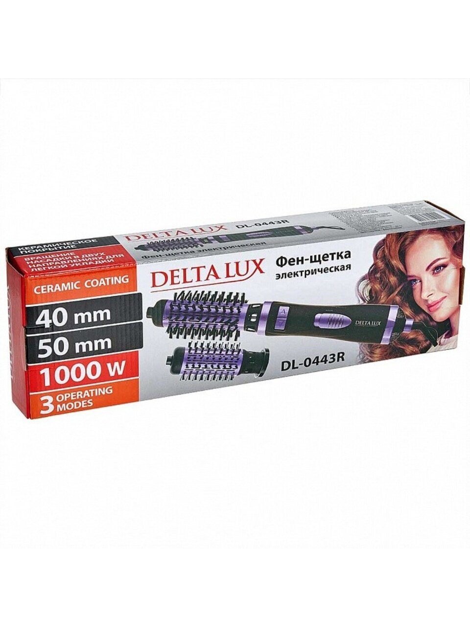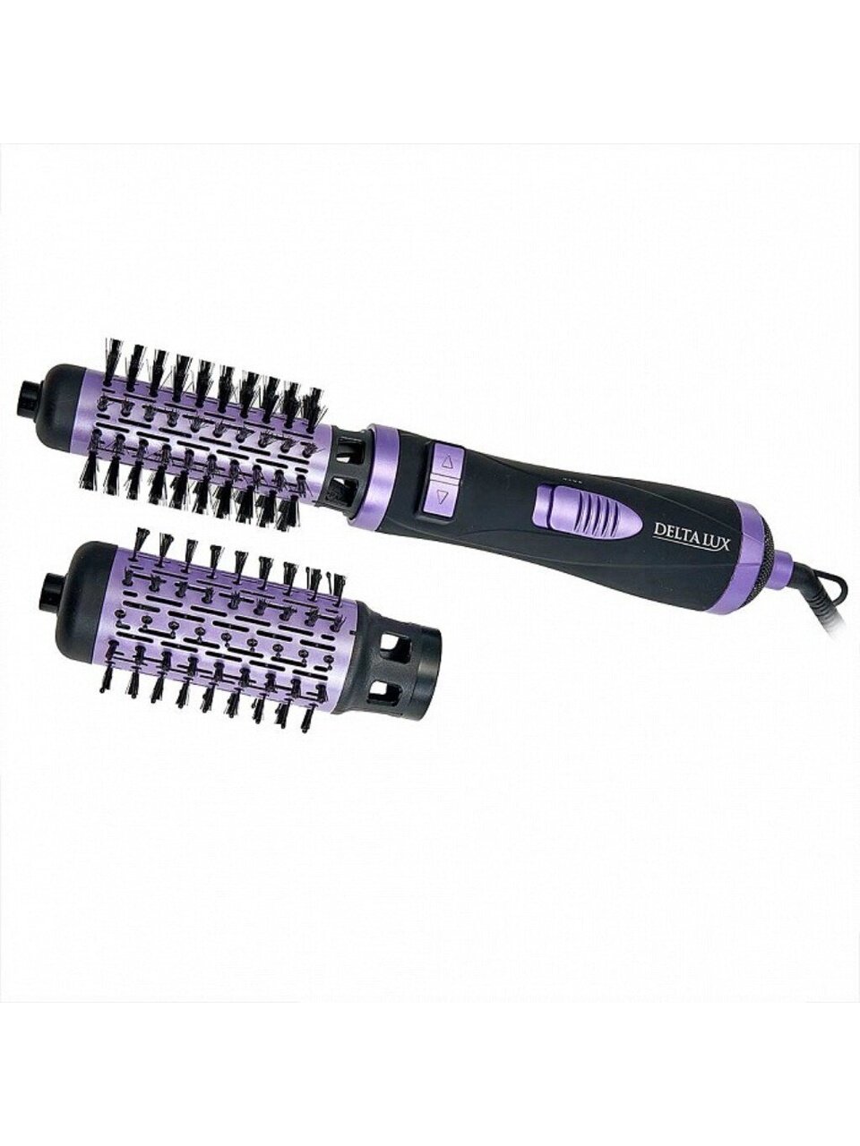 Вы можете приобрести «Фен-щетка Delta, DL-0443R, 1000 Вт, холодный обдув, вращающийся механизм, 1 режим, 2 скорости, 2 насадки, черный с фиолетовым» и другие товары в нашем интернет-магазине в Белгороде по низким ценам и с бесплатным самовывозом.