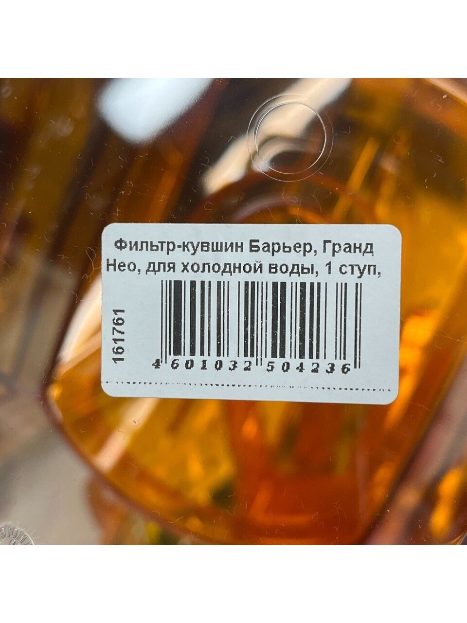 Вы можете приобрести «Фильтр-кувшин Барьер, Гранд Нео, для холодной воды, 1 ступ, 4.2 л, оранжевый, янтарь, В014Р00» и другие товары в нашем интернет-магазине в Краснодаре по низким ценам и с бесплатным самовывозом.