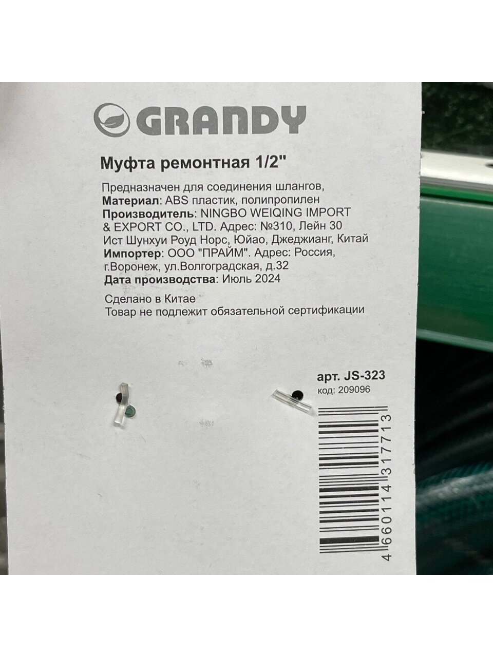 Муфта ремонтная 1/2"-1/2" Grandy JS-323 — идеальное решение для надежного соединения труб. Изготовленная из прочного ABS-пластика, она обеспечивает долговечность и устойчивость к внешним воздействиям. Подходит для труб диаметром 1/2 дюйма, гарантируя точное и надежное соединение.