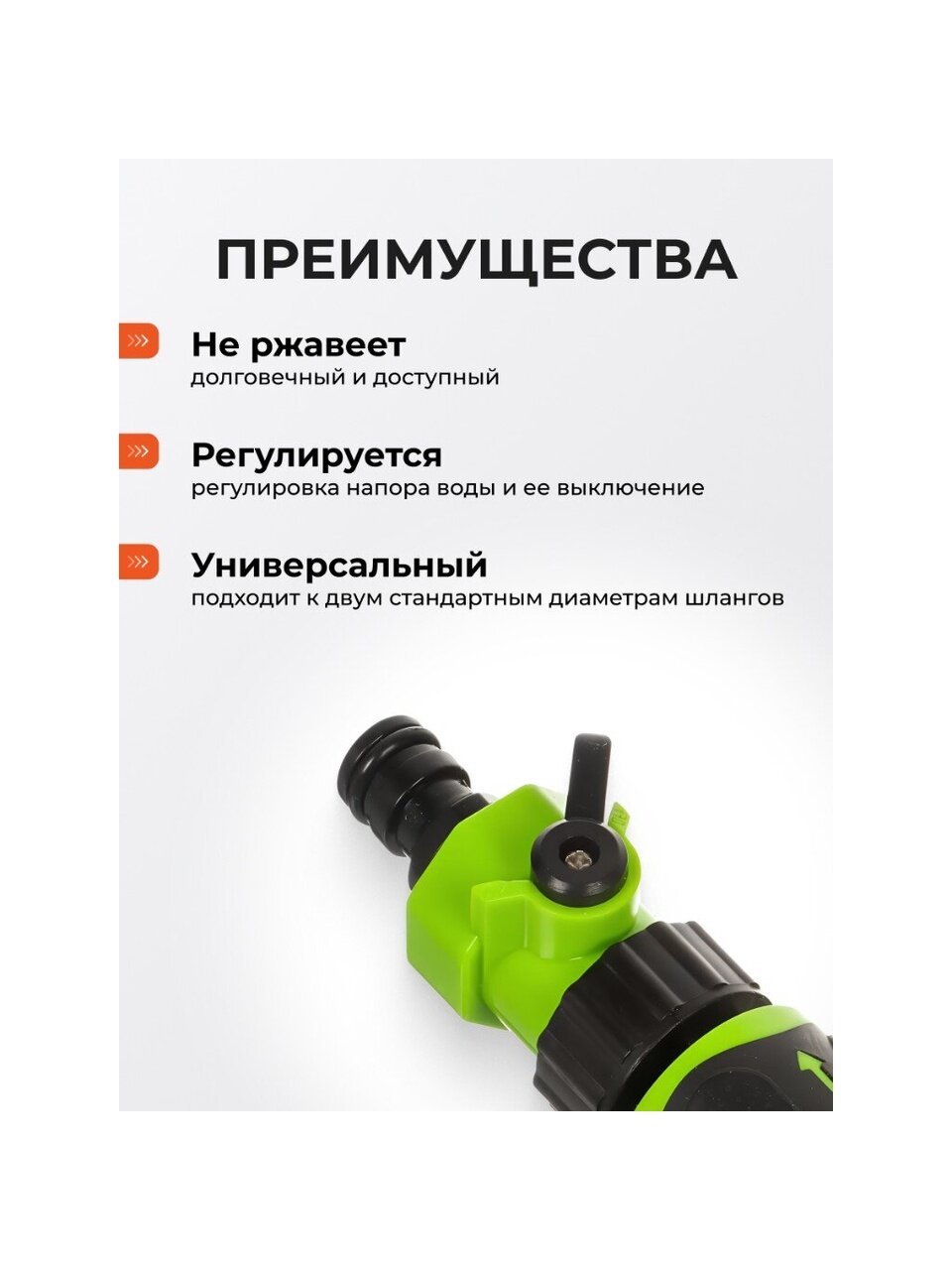 Пластиковый коннектор предназначен для регулировки напора воды и ее отключения с помощью специального вентиля, находящегося на коннекторе. Таким образом, нет необходимости подходить к крану при смене насадок.