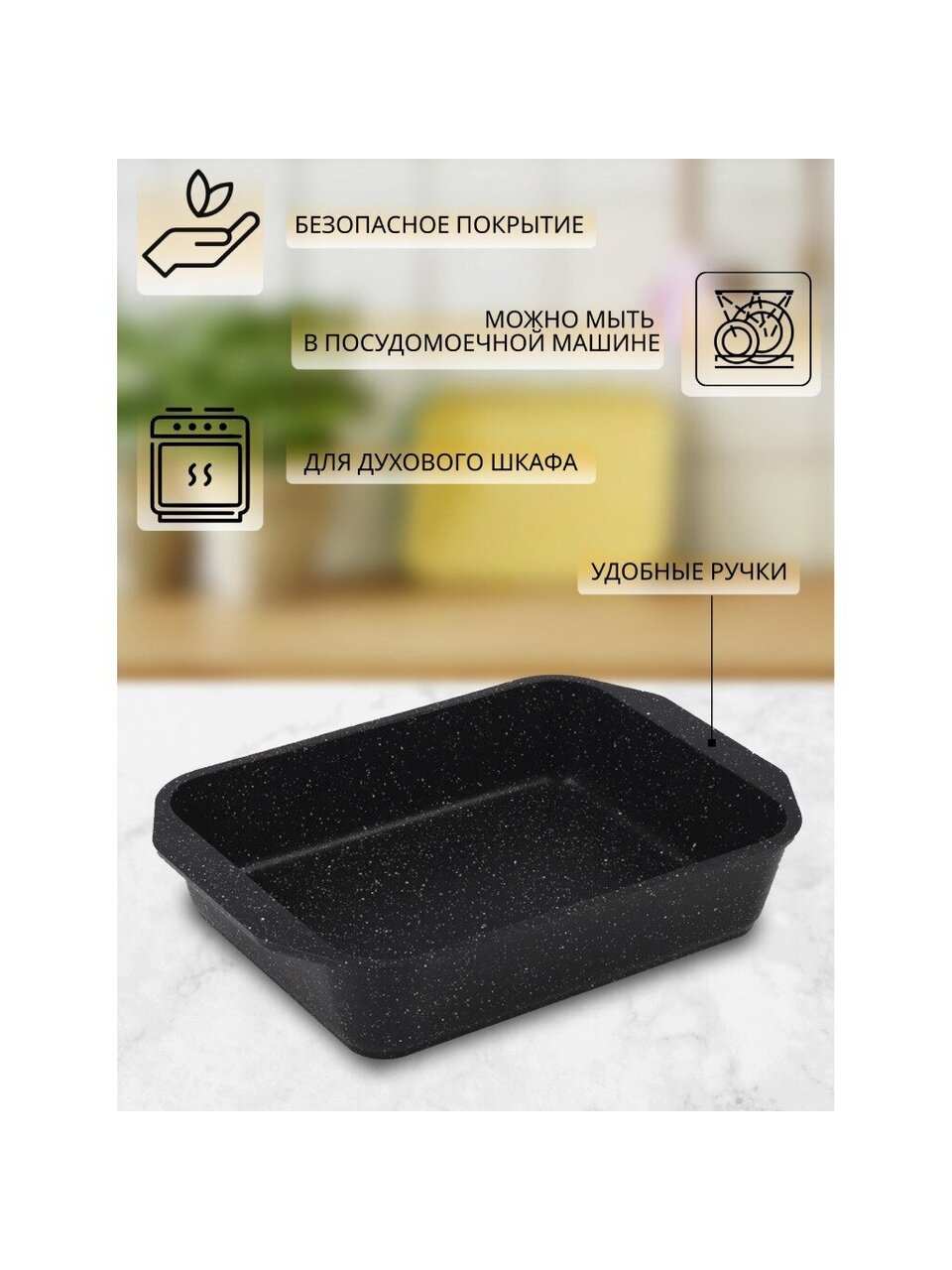 Форма для запекания Мечта Гранит black 33х22х5.5 см — идеальный выбор для вкусных блюд без прилипания, подходит для духовки и мытья в посудомоечной машине.