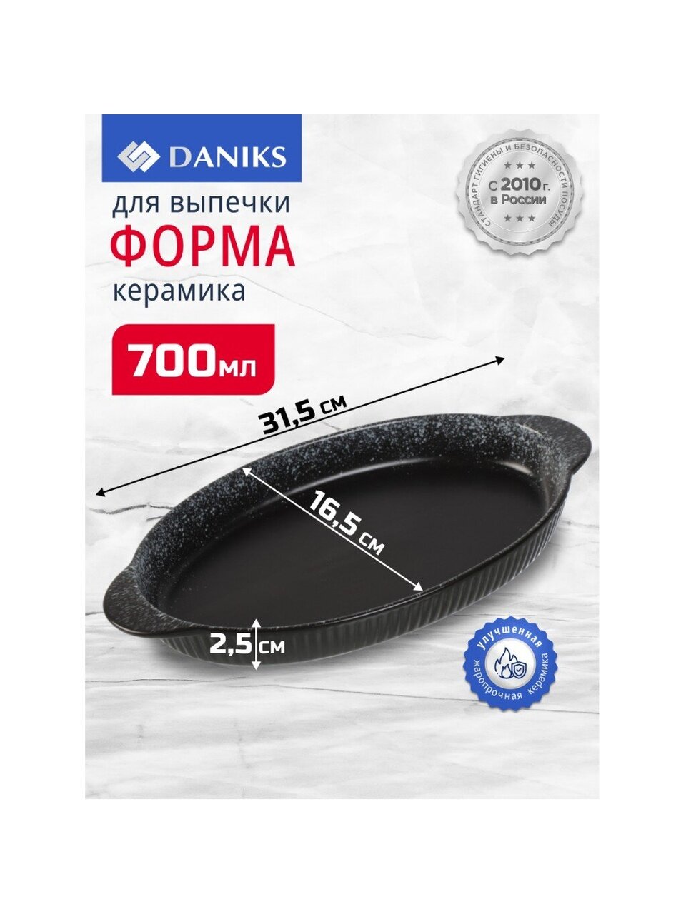 Элегантная керамическая форма Daniks Полночь 31,5×16,5 см — практичное решение для запекания мяса, рыбы и пирогов дома и на даче, подходит для СВЧ и посудомойки.