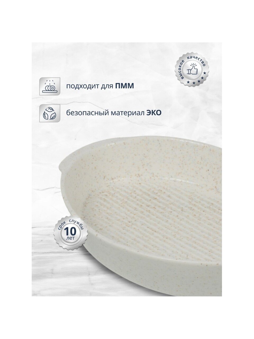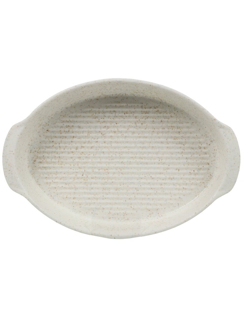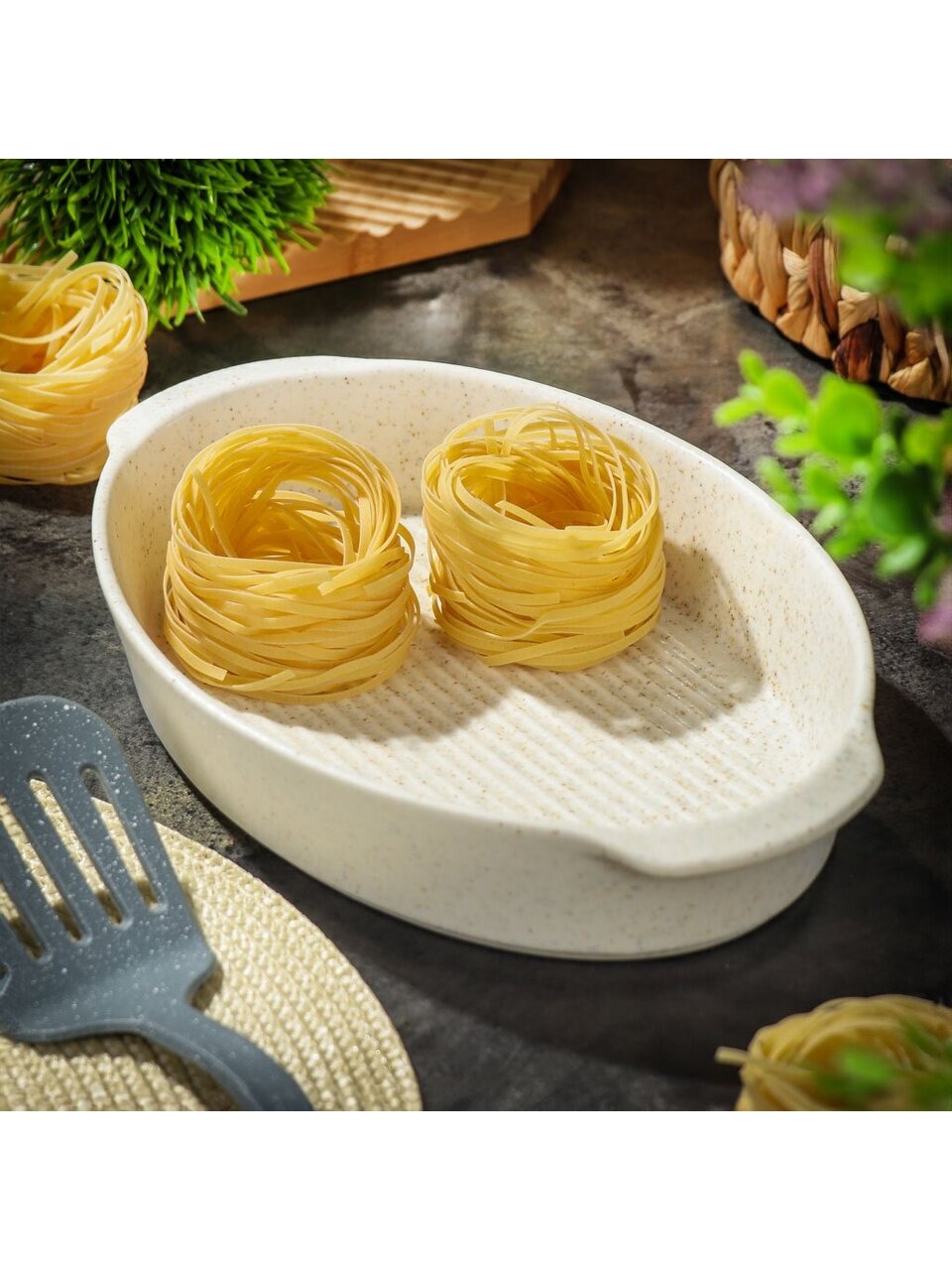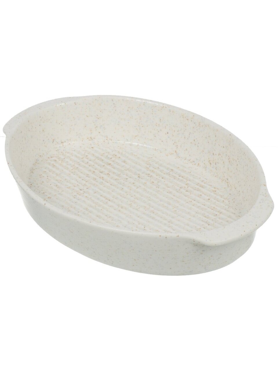 Если вы сомневаетесь, какую форму выбрать для пирога или что лучше для запекания курицы, обратите внимание на овальную форму Daniks: она выдерживает высокие температуры, легко моется в посудомоечной машине и подходит для СВЧ. Приятный бежевый цвет и фактура гранита гармонично впишутся в любой интерьер кухни.