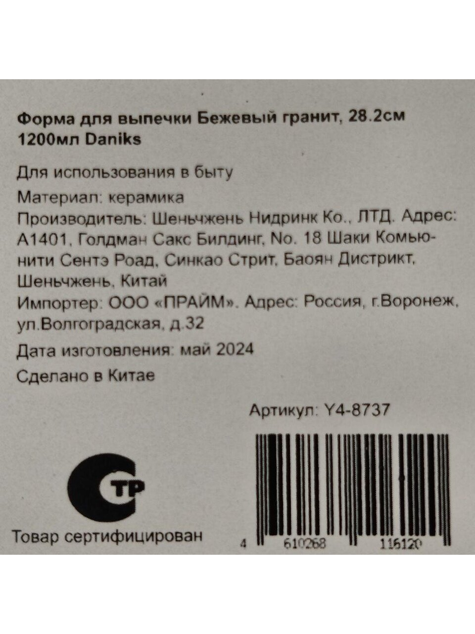Вы можете приобрести «Форма для выпечки керамика, 28.2х18.7х5.2 см, 1.2 л, овальная, Daniks, Бежевый гранит, Y4-8737» и другие товары в нашем интернет-магазине в Орле по низким ценам и с бесплатным самовывозом.