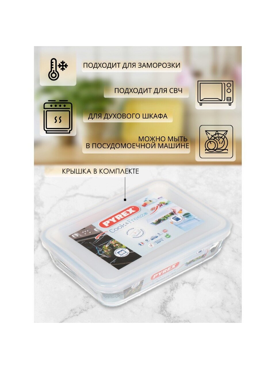 Форма для запекания Pyrex Cook Freez 2,6 л: жаропрочное стекло, крышка, подходит для духовки и СВЧ. Идеально для курицы, рыбы, пирогов.