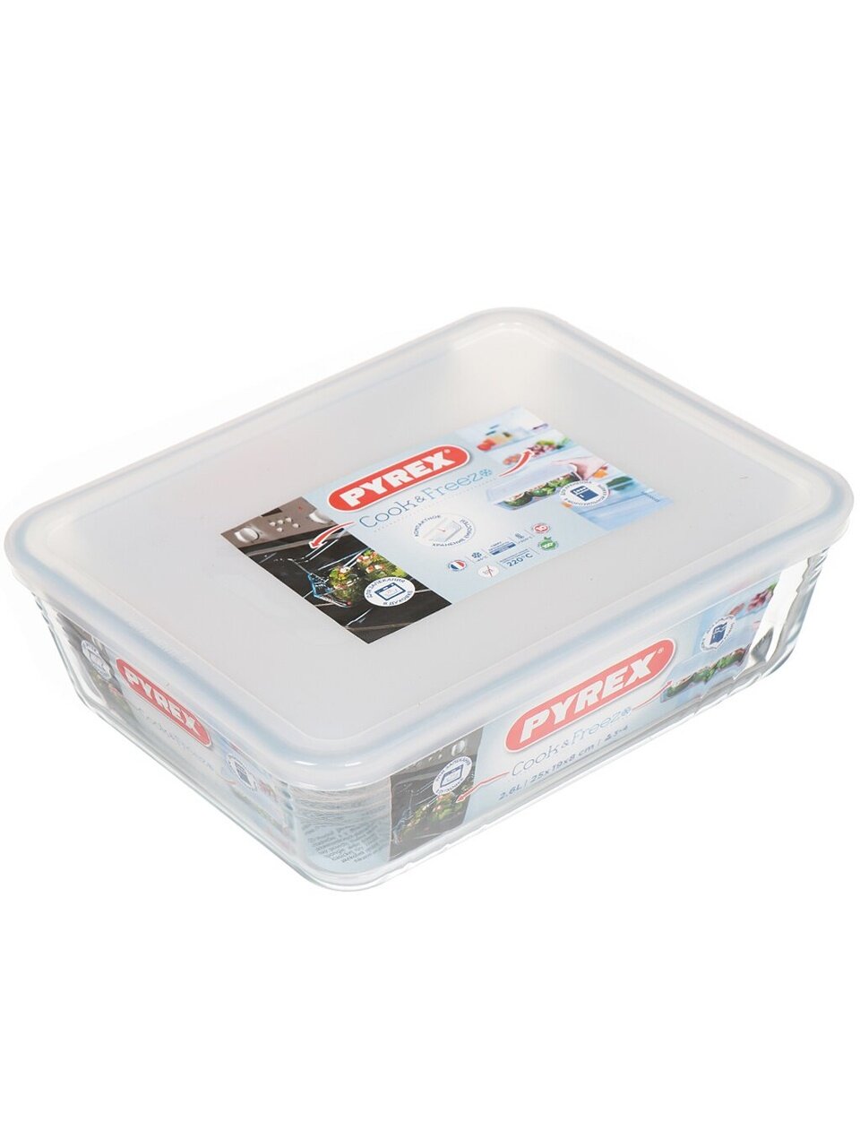 Pyrex Cook Freez выполнена из жаропрочного стекла и подходит для использования в духовке и СВЧ. Размер 19×25×8 см и объём 2,6 л оптимальны для большинства блюд.