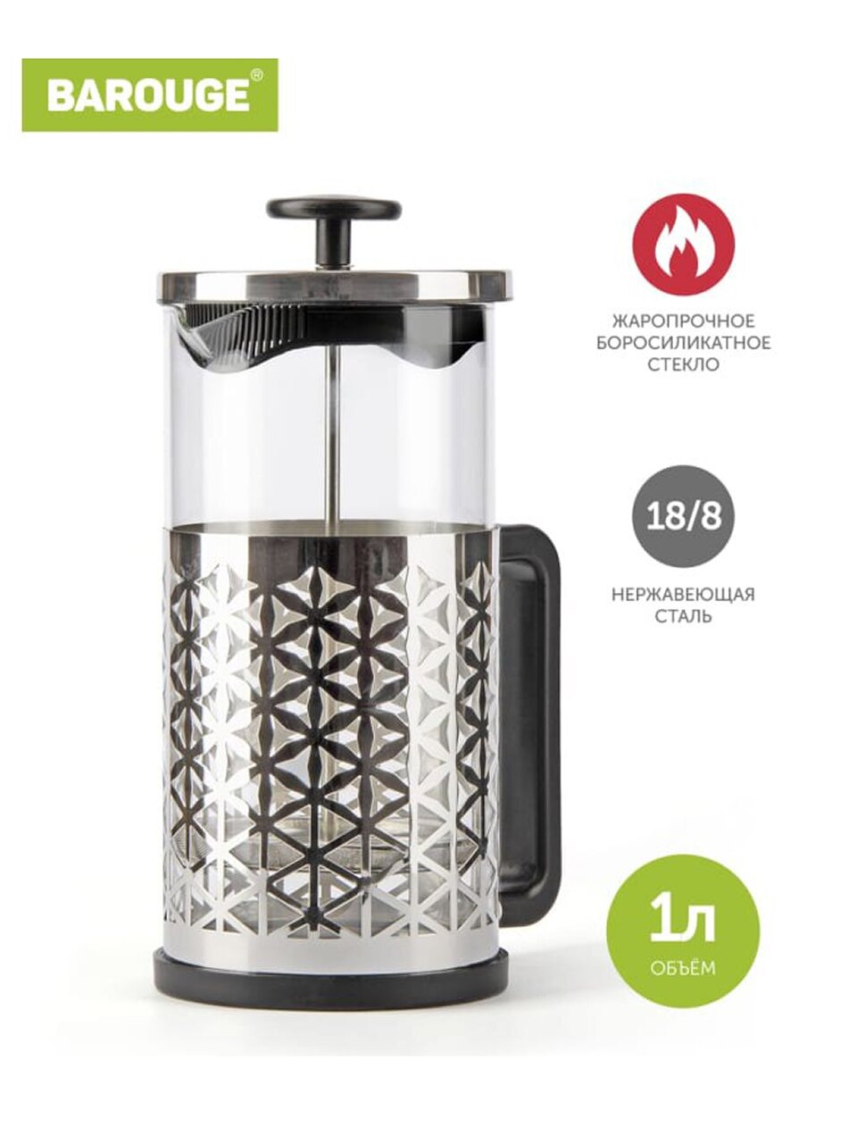 Вы можете приобрести «Френч-пресс 1 л, стекло, Barouge, Traditional choice, серебро, BF-705» и другие товары в нашем интернет-магазине в Таганроге по низким ценам и с бесплатным самовывозом.