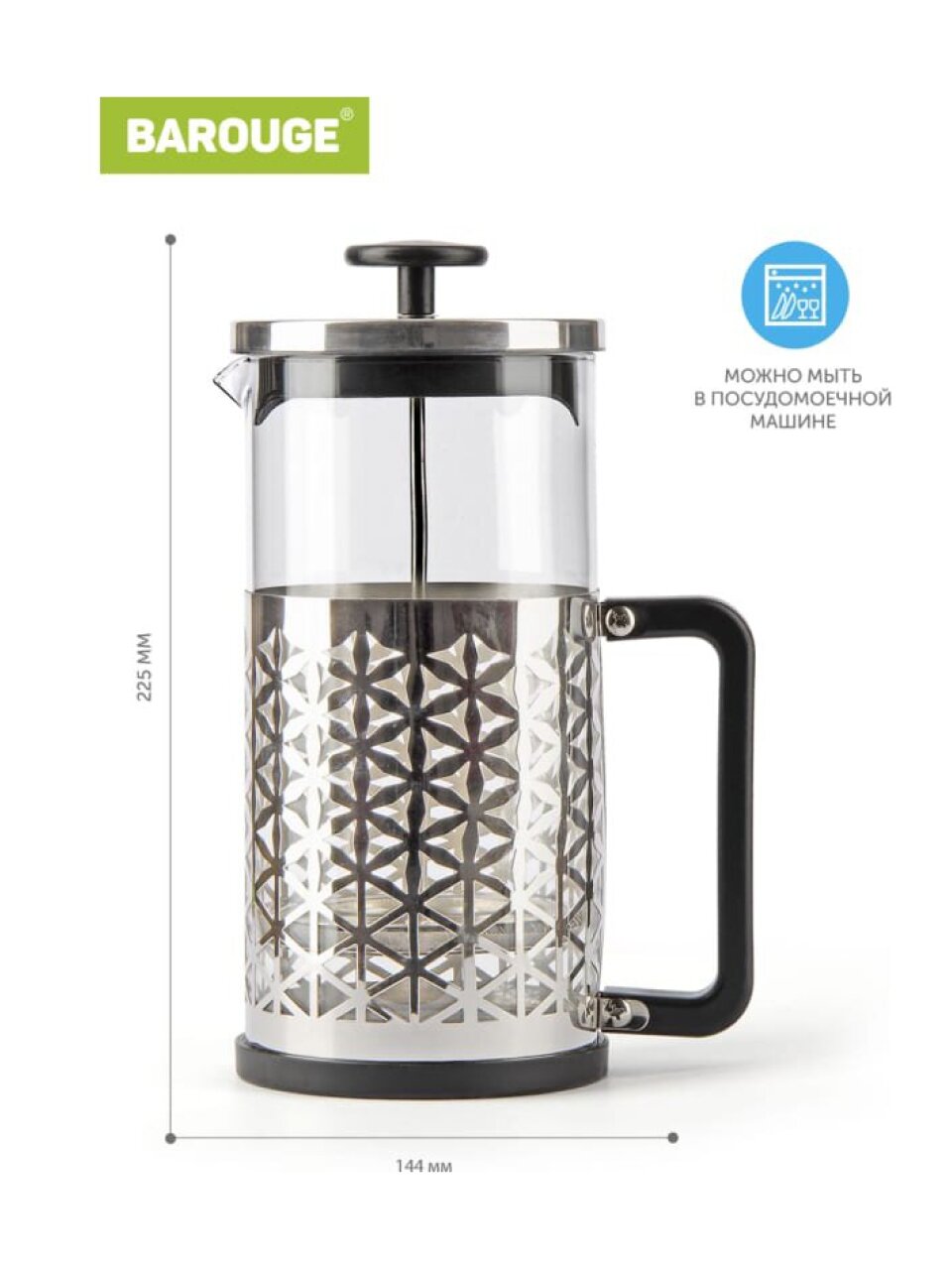 Френч-пресс - это уникальное сочетание стиля, прочности и функциональности, которое станет идеальным дополнением вашей кухни. Изготовленный из высокопрочного стекла и надежной нержавеющей стали, он позволит приготовить ароматный и насыщенный кофе или чай всего за несколько минут.