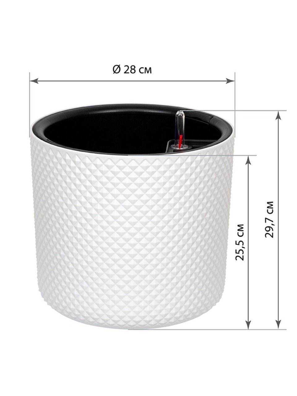 Вы можете приобрести «Кашпо пластик, 13.5 л, 28х28х25.5 см, автополив, со вставкой, белое, Idea, Фасет, М 3238» и другие товары в нашем интернет-магазине в Клинцах по низким ценам и с бесплатным самовывозом.
