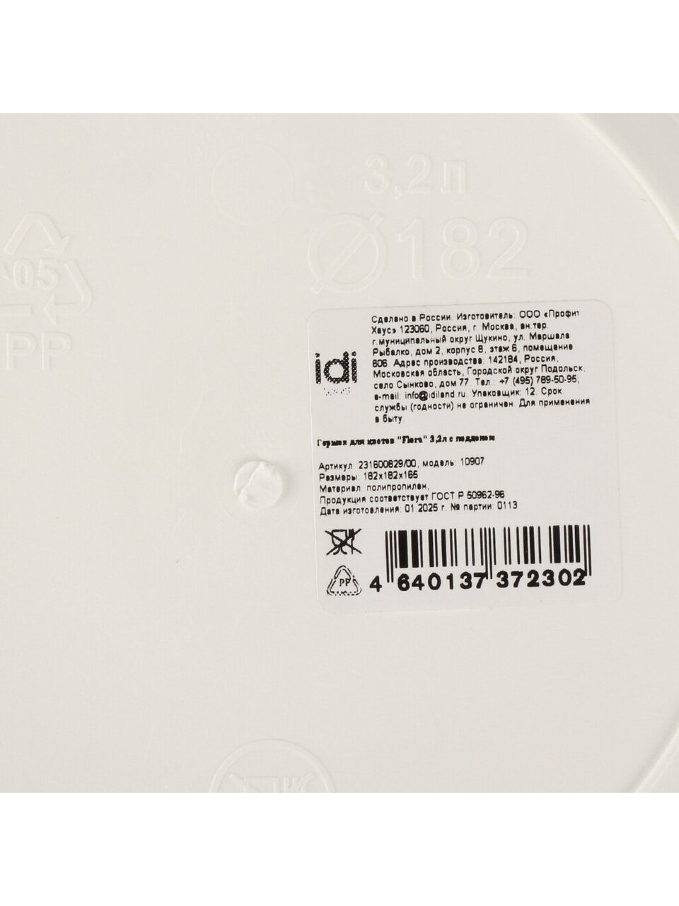 Горшок для цветов из пластика объемом 3.2 л — стильное решение для украшения интерьера и создания уюта. Белый цвет и современный дизайн Idiland Flora гармонично впишутся в любой дом или дачу. Прочный материал обеспечивает долгий срок службы, а поддон защищает поверхность от влаги.