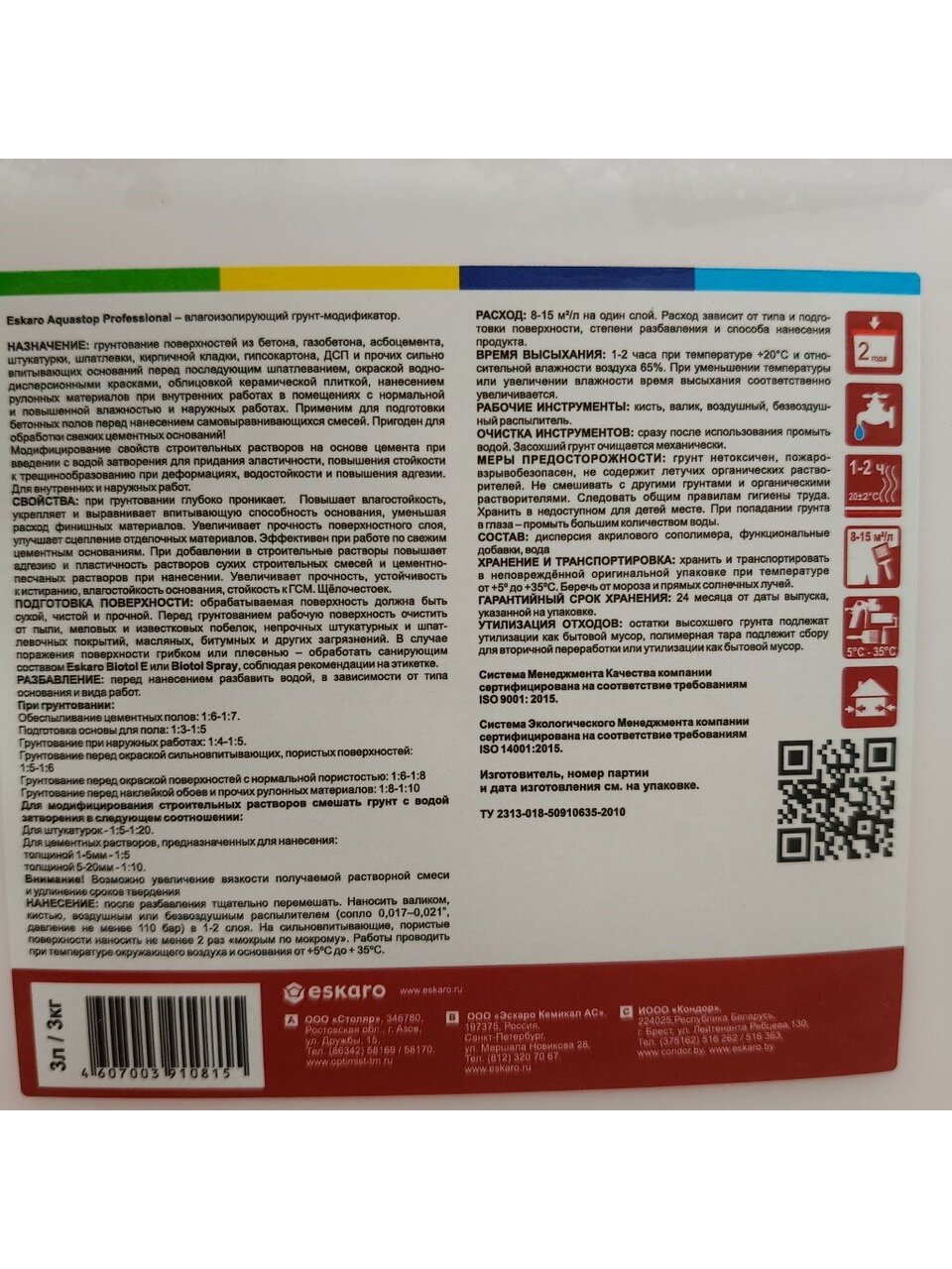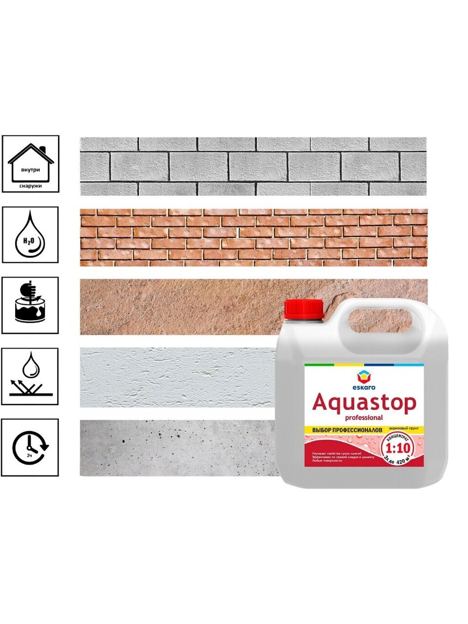 Вы можете приобрести «Грунтовка водно-дисперсионная, акриловая, Eskaro, Aquastop Professional, концентрат 1:10, 3 л» и другие товары в нашем интернет-магазине в Армавире по низким ценам и с бесплатным самовывозом.