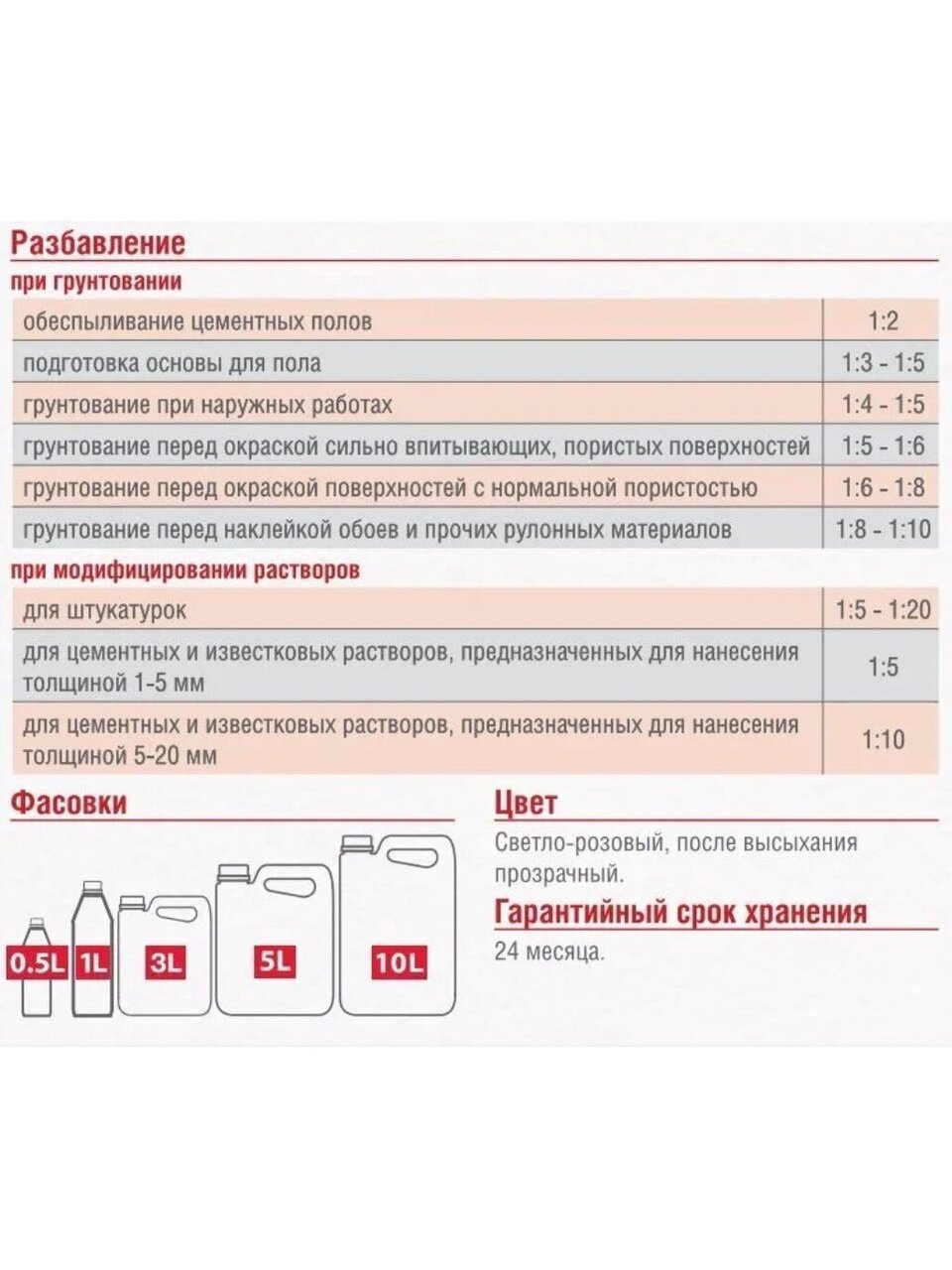 Грунтование при наружных работах: 1:4-1:5.