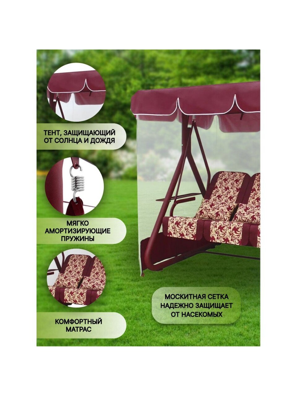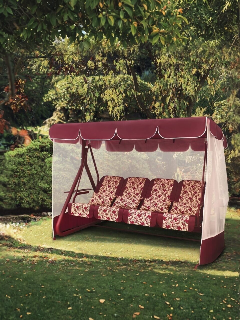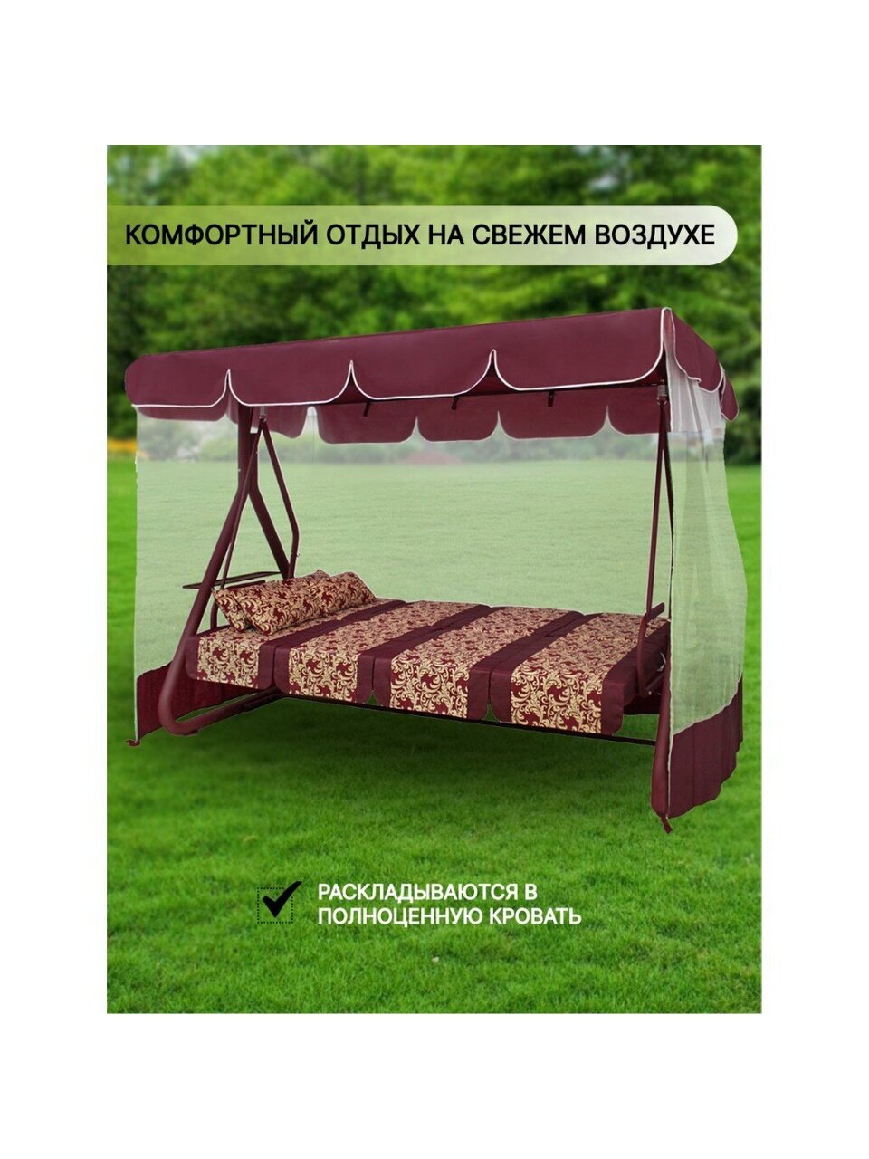 Садовые качели Дефа Люси впечатляют своей вместительностью и продуманностью конструкции. Они легко раскладываются в удобную кровать, позволяя вам расслабиться и насладиться отдыхом на свежем воздухе. Бордовый цвет придаст вашему саду изысканность и утонченность, а москитная сетка, идущая в комплекте, обеспечит защиту от назойливых насекомых в летние вечера.