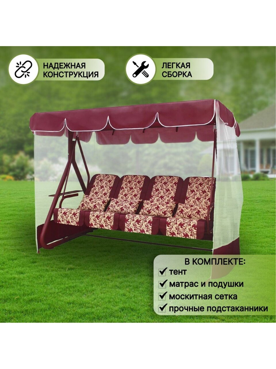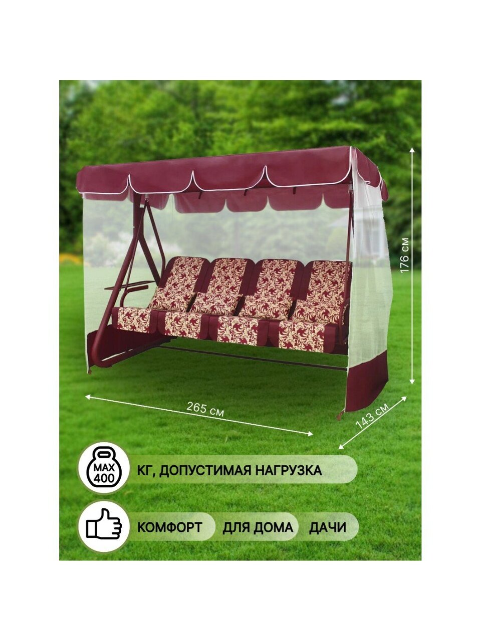 Вы можете приобрести «Качели садовые 4-местные, 265х143х176 см, 380 кг, Arno, Дефа Люси, раскладываются в кровать, с москитной сеткой, бордовые, 2017-КД-58, металл» и другие товары в нашем интернет-магазине в Брянске по низким ценам и с бесплатным самовывозом.
