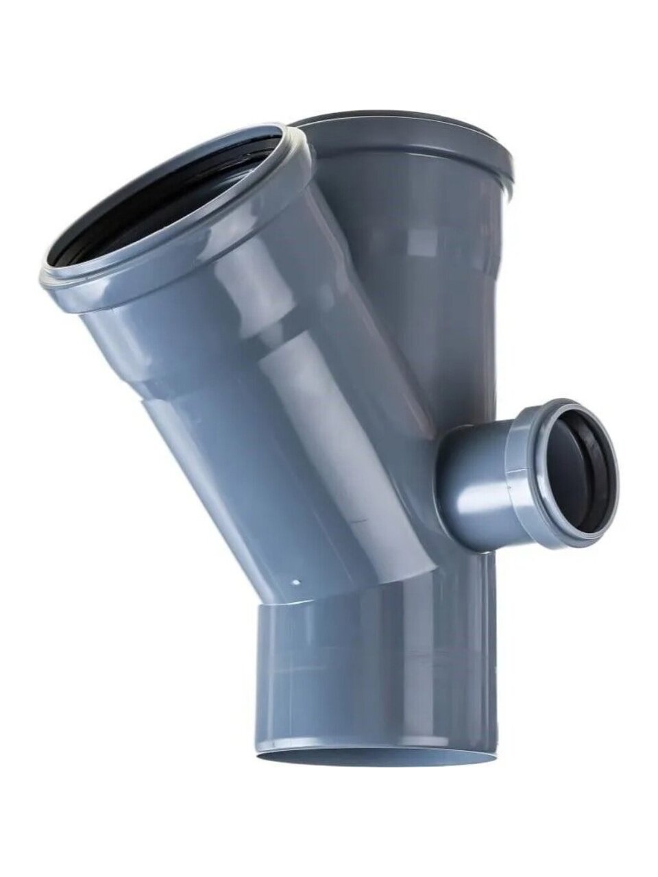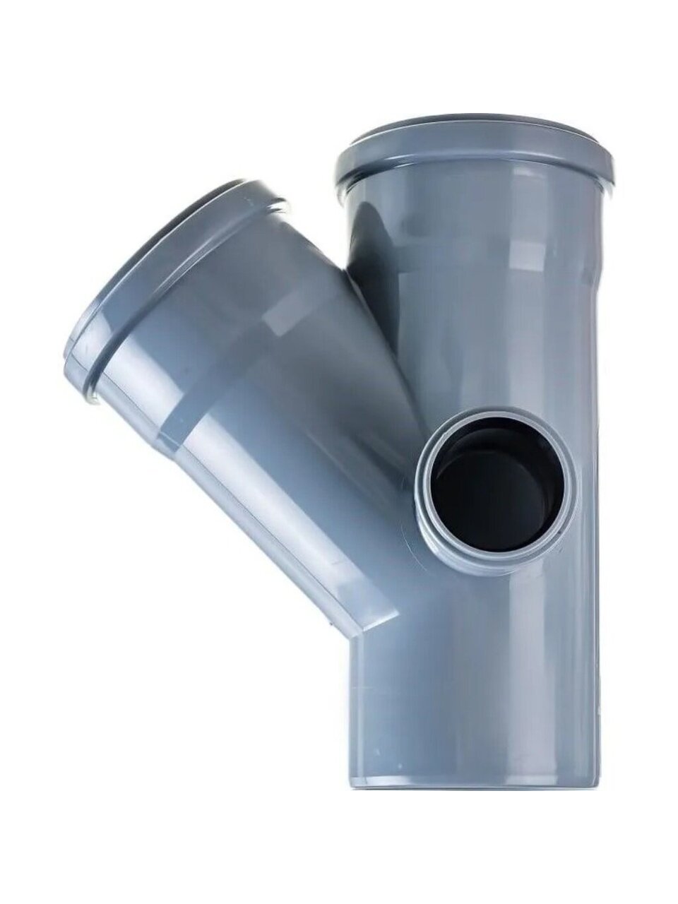 Крестовина двухплоскостная канализационная Ростурпласт диаметром 110 мм под углом 45 градусов для монтажа систем внутренней канализации. Имеет выход с правой стороны под трубу 50 мм.