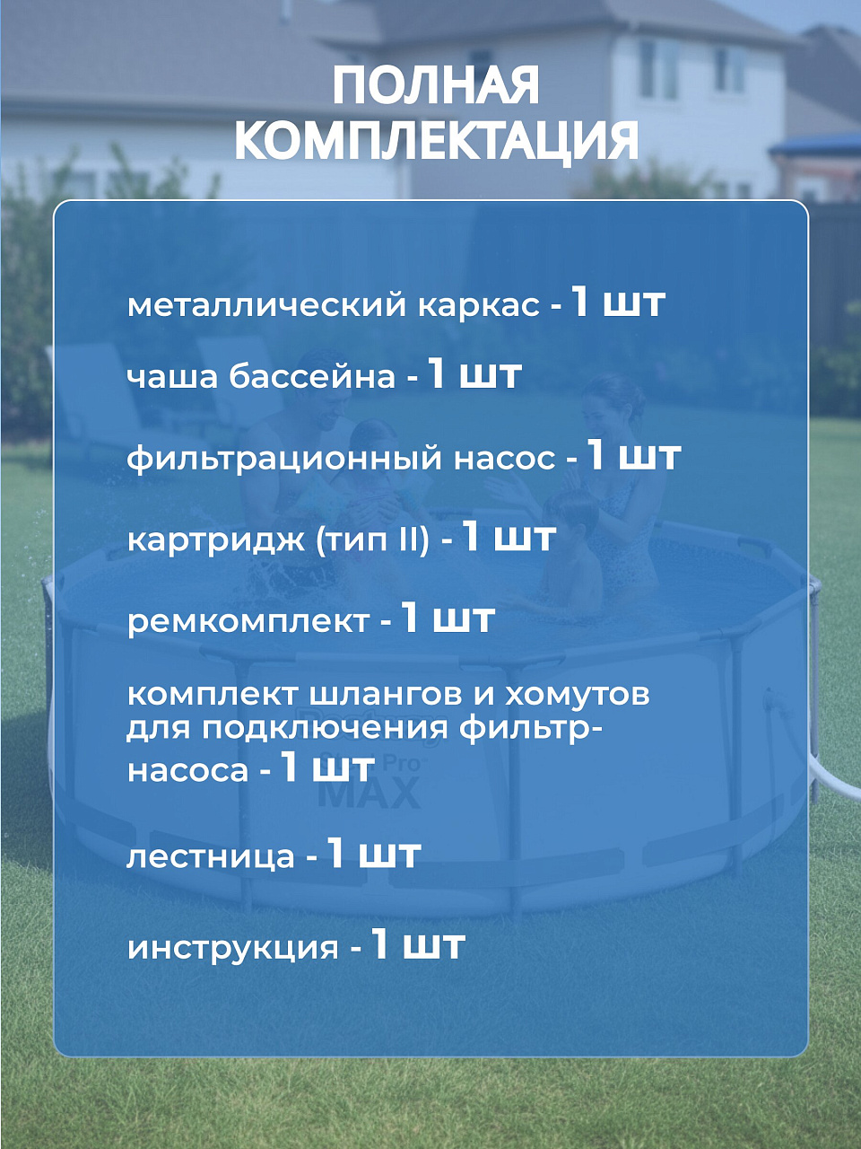 Покупая каркасный бассейн Bestway, вы получаете не только качественный продукт, но и возможность создать уютное пространство для отдыха на даче. Установить бассейн можно всего за 45 минут, и он станет центром внимания на вашем участке. Наслаждайтесь летними днями в прохладной воде и создайте незабываемые моменты с семьей и друзьями. Это не просто бассейн, это инвестиция в ваше летнее счастье и комфорт.