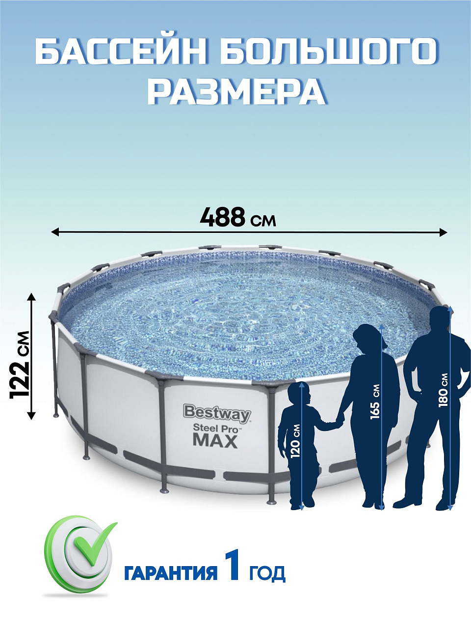 Бассейн для дачи Bestway Steel Pro Max – это не только средство для освежающего отдыха, но и возможность создать уютный уголок для всей семьи. Наслаждайтесь летом на полную катушку, не покидая собственного двора. Выгода от покупки очевидна: качественный отдых, надежность конструкции и стильный дизайн. Подарите себе и своим близким радость и комфорт с бассейном Bestway!