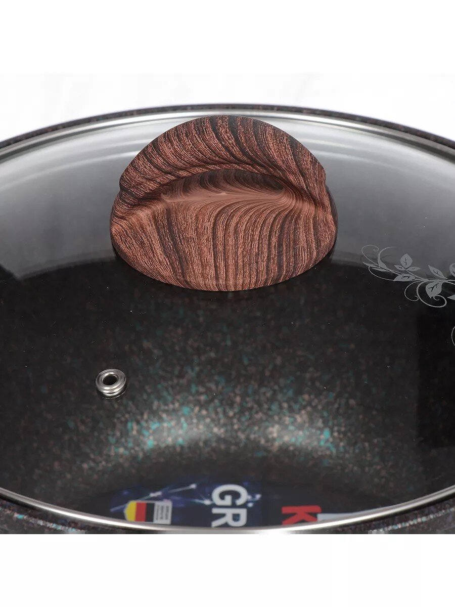 Для тех, кто спрашивает, чем отличается гранитное покрытие от обычного — оно прочнее, не царапается ложками и устойчиво к перепадам температур. Кастрюля не подходит для индукционных плит, но совместима с газовыми, электрическими и стеклокерамическими плитами, а также для духовки. Объём 3 литра оптимален для приготовления плова, риса, каши, макарон, пельменей или пюре на семью из 2-4 человек. Стеклянная крышка с выпускным клапаном позволяет контролировать процесс и предотвращает перелив.