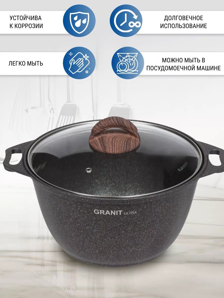 Кастрюля 4 л Kukmara Granit Ultra: антипригарное покрытие, стеклянная крышка, толстое дно — для идеального плова, супа и каши дома и на даче