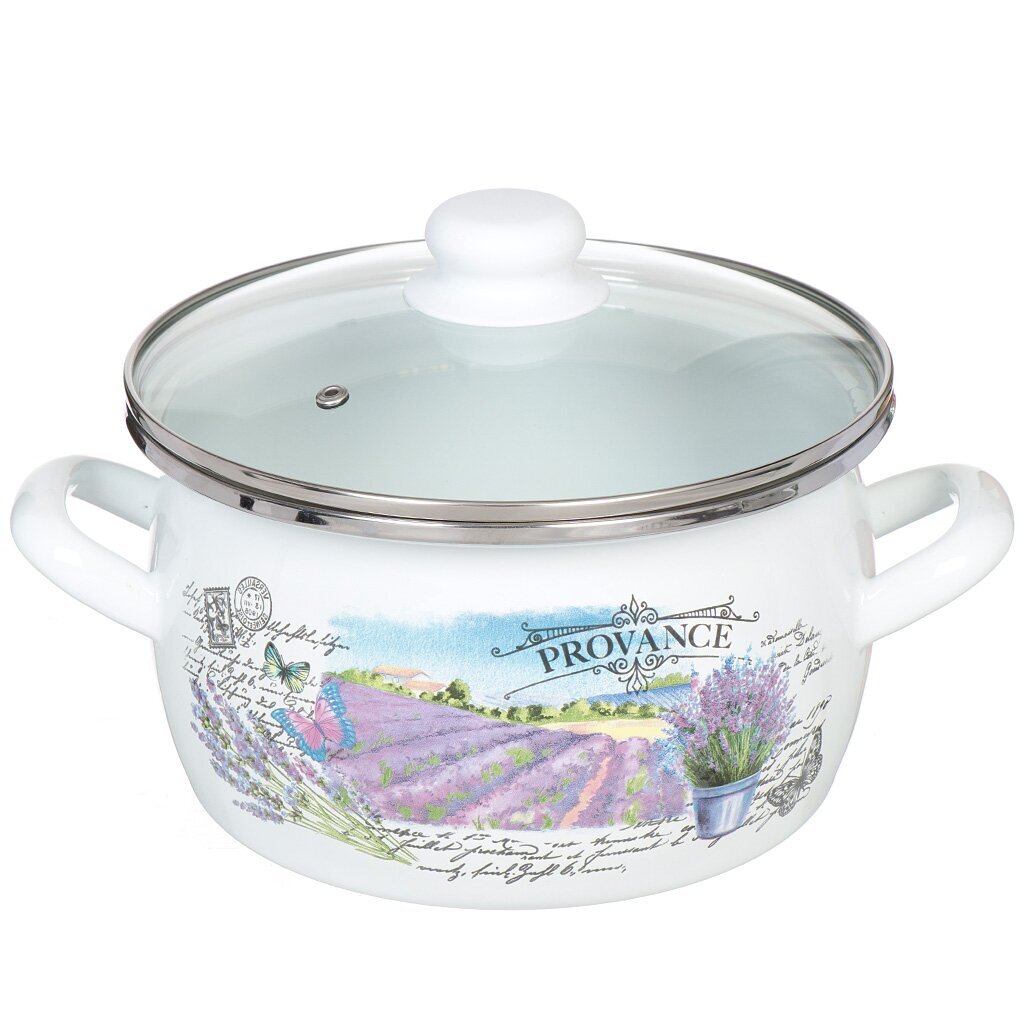 Кастрюля эмалированная Сантэкс Лаванда 4 л с крышкой из стекла — стильный выбор для индукции и любых плит. Удобство, долговечность, дизайн под лаванду.